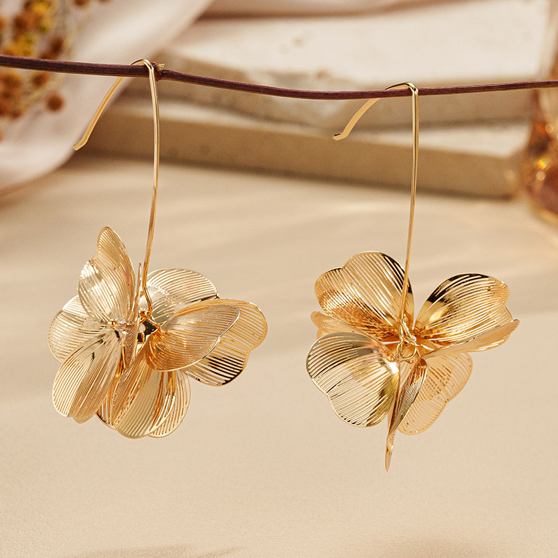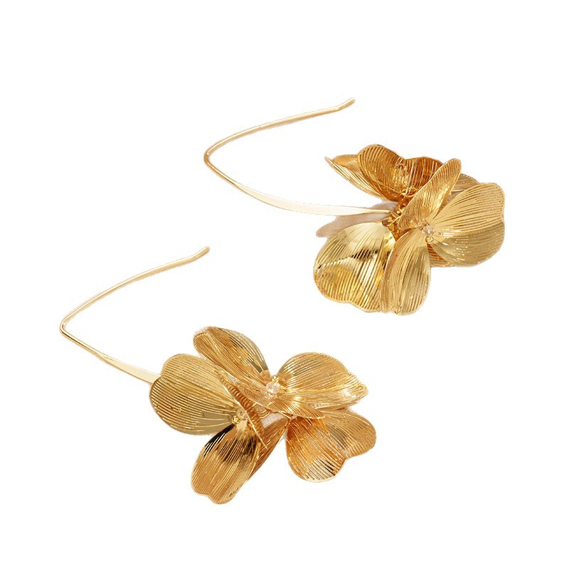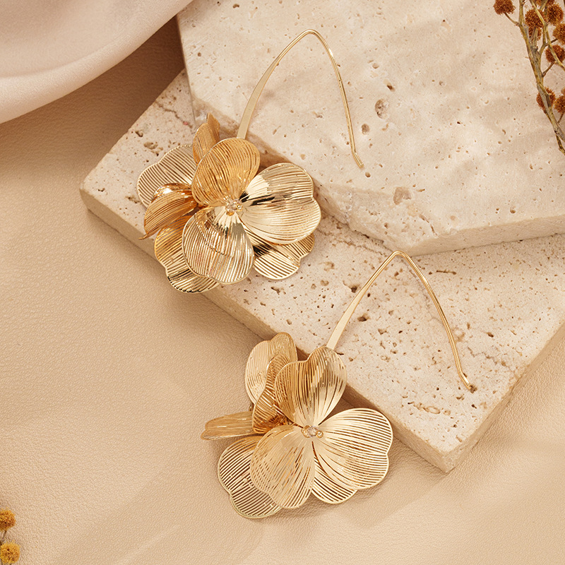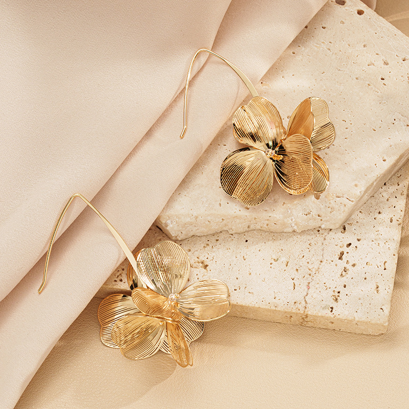 跨境新款夸张花朵耳钩欧美时尚花瓣耳坠饰品质感立体银杏花朵耳钉