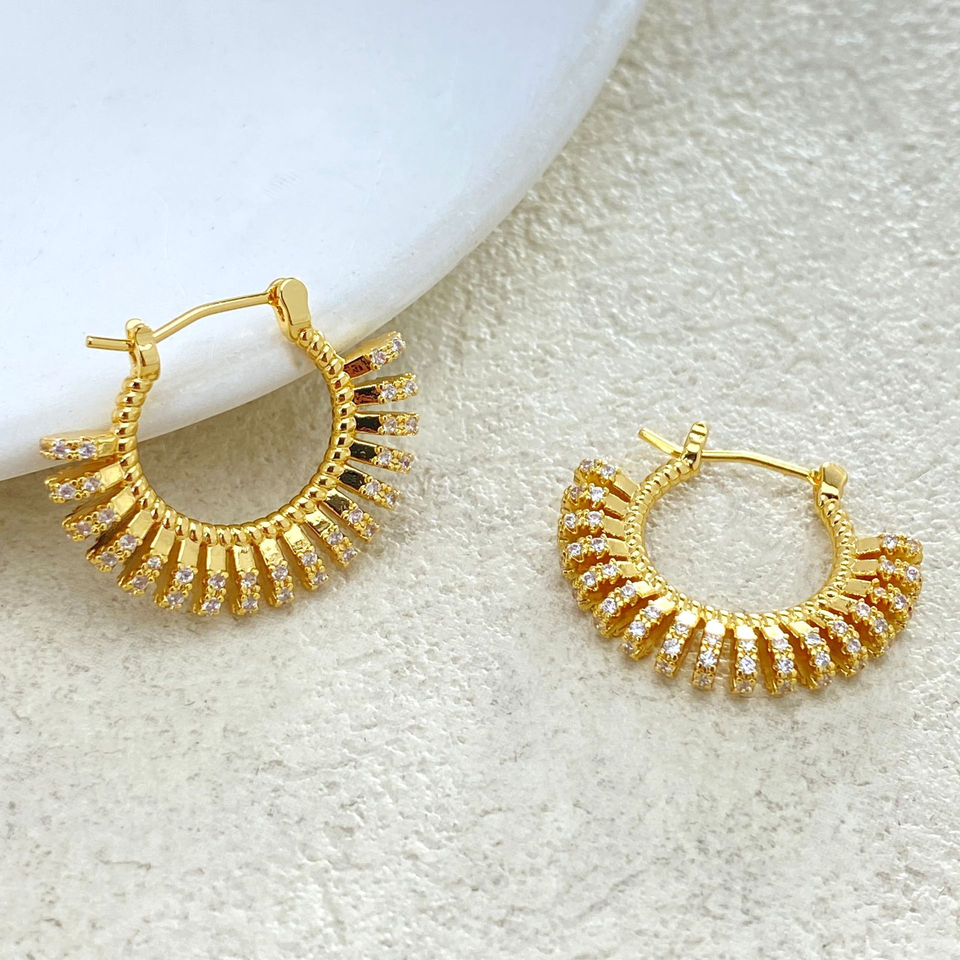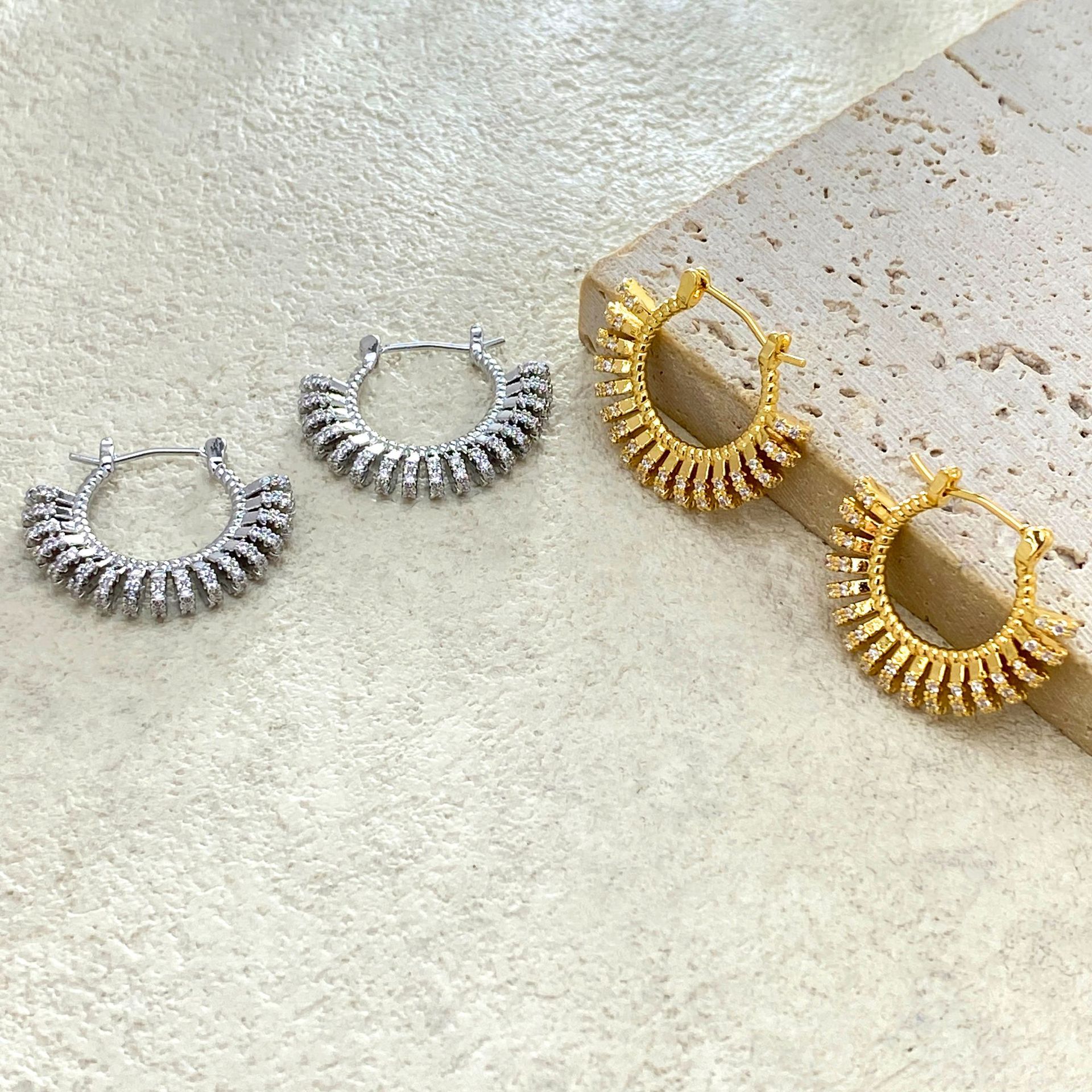 材质: 铜 适用人群: 女式 流行元素分类: 几何 重量: 0.5 kg/对 装箱信息:长宽高:21X24X25cm 装箱重量: 22KG 装箱数量:29pcs