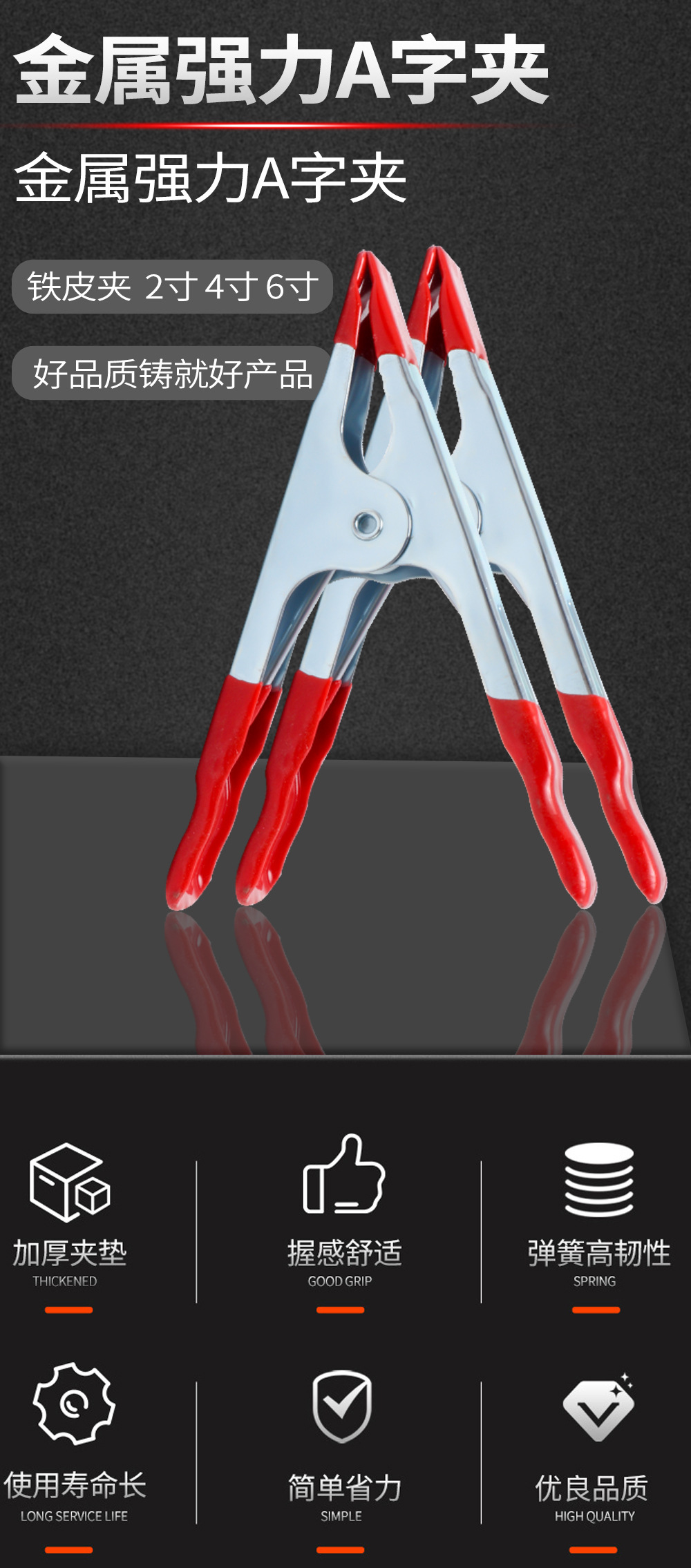 2寸:4寸,6寸弹簧夹 铁皮弹簧夹,帐篷夹,鳄鱼夹