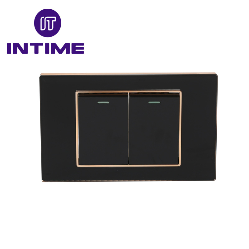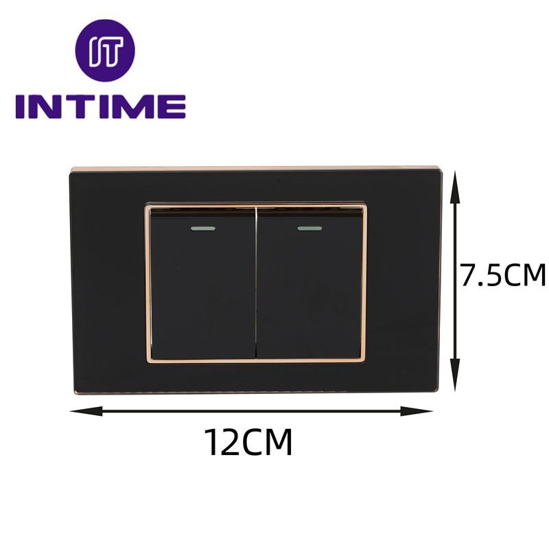 墙壁插座 二开单开双控 黑色玻璃面板高级现代简约风格 开关批发