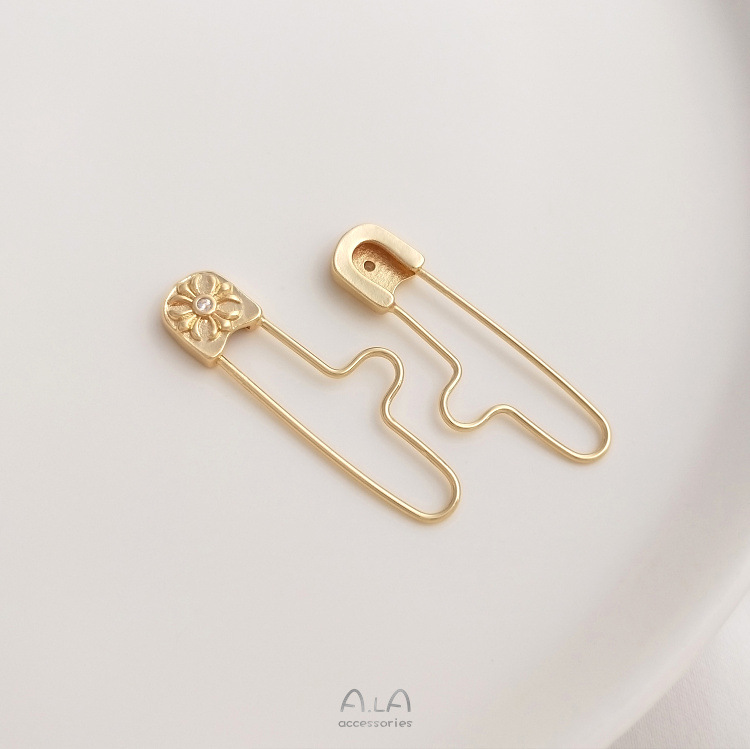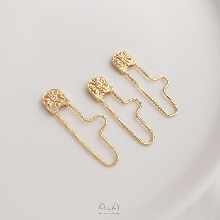 保色14K包金单锆别针万能扣吊坠改胸针diy手工串珠挂吊饰U形胸针 投诉