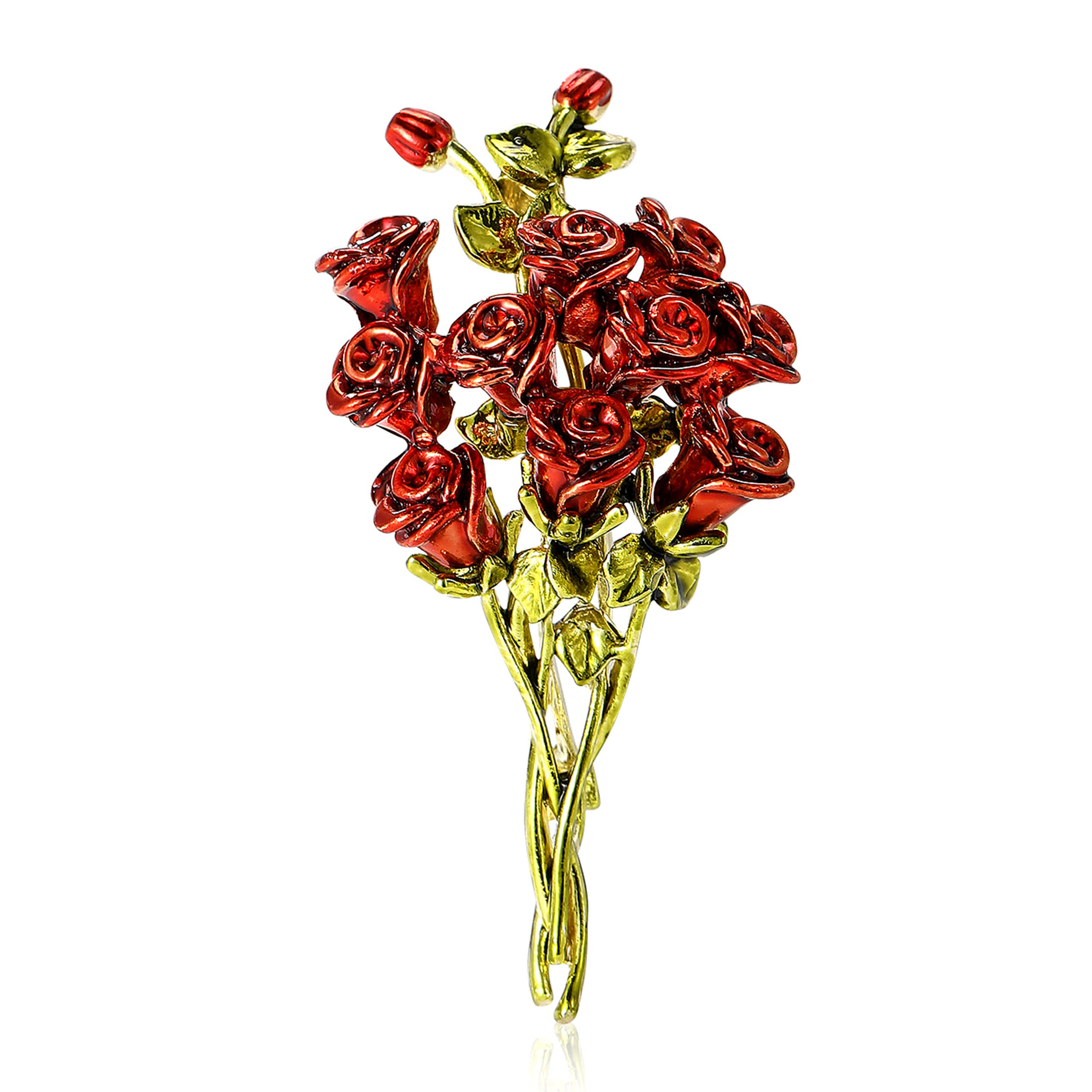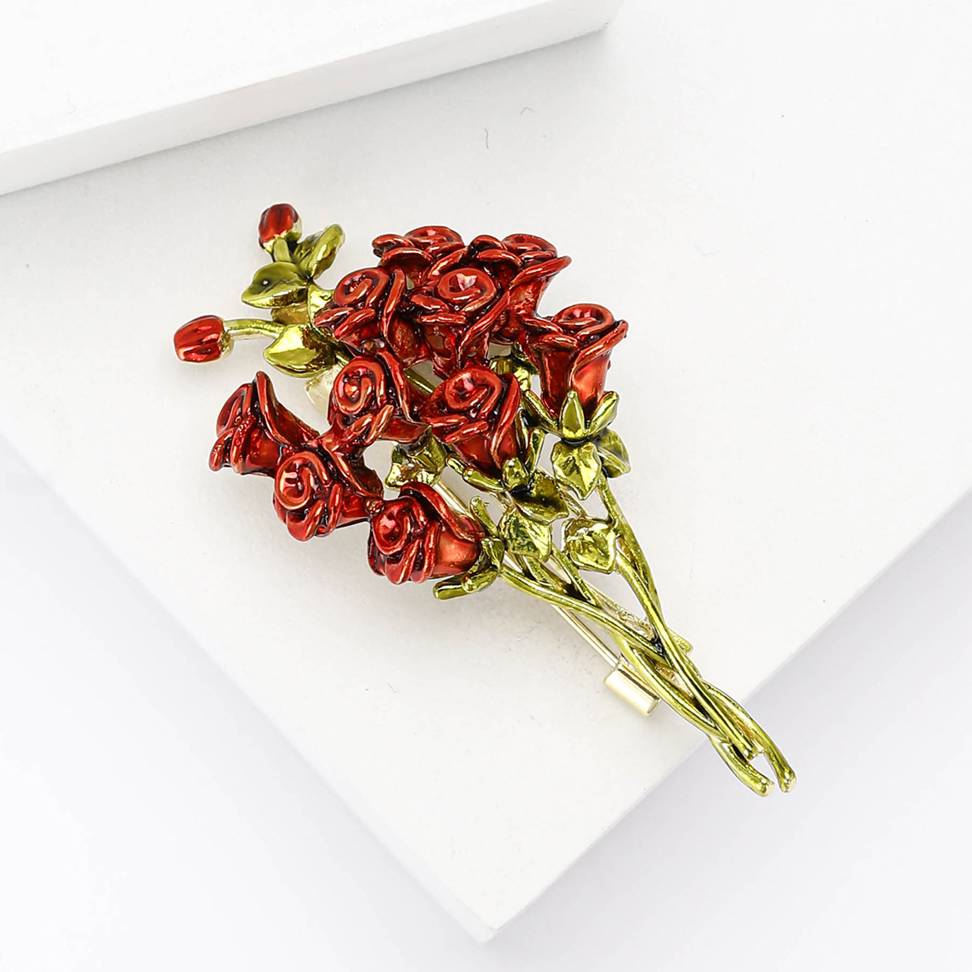 新款时尚高档合金珐琅玫瑰花束胸针气质简约女士服饰胸花饰品别针 投诉