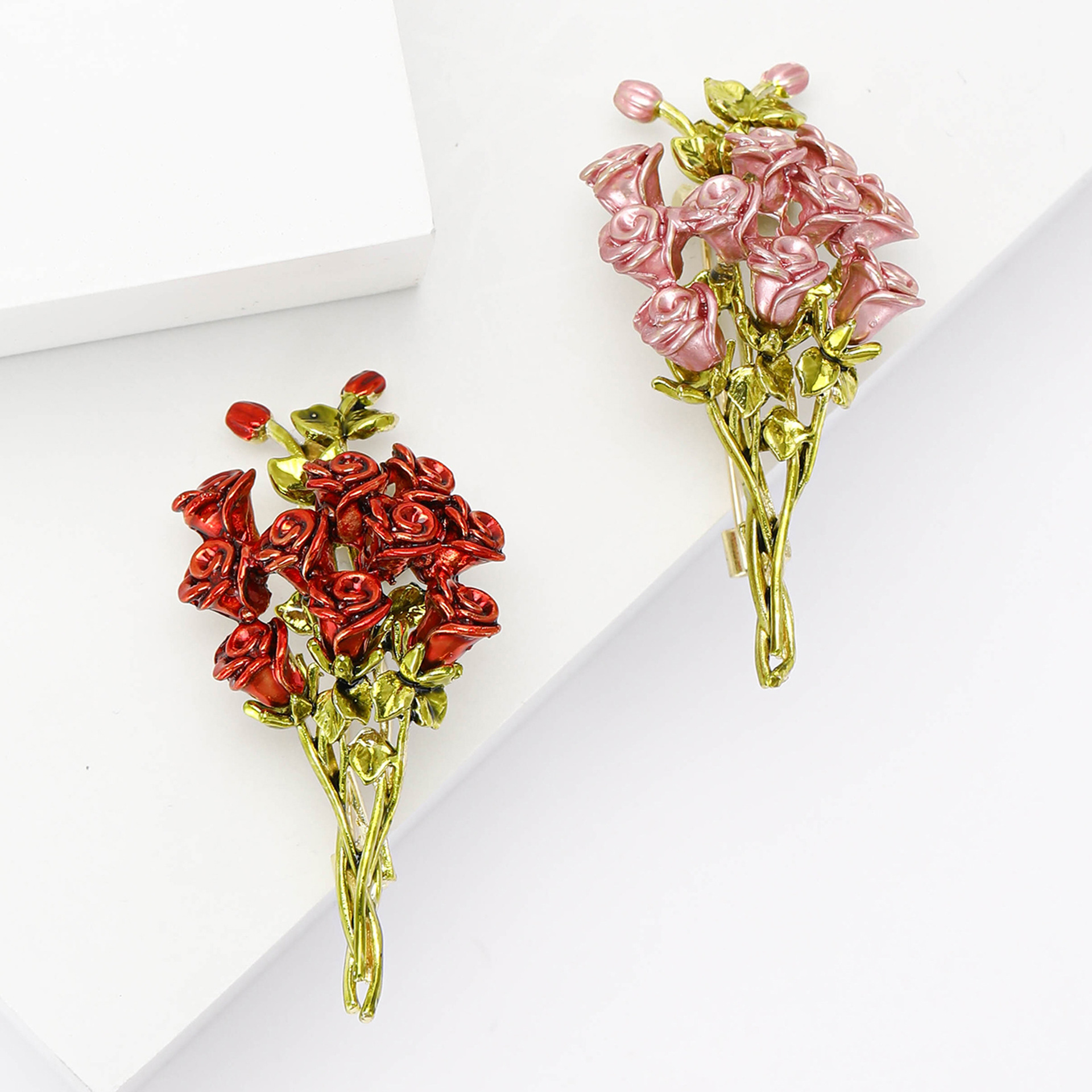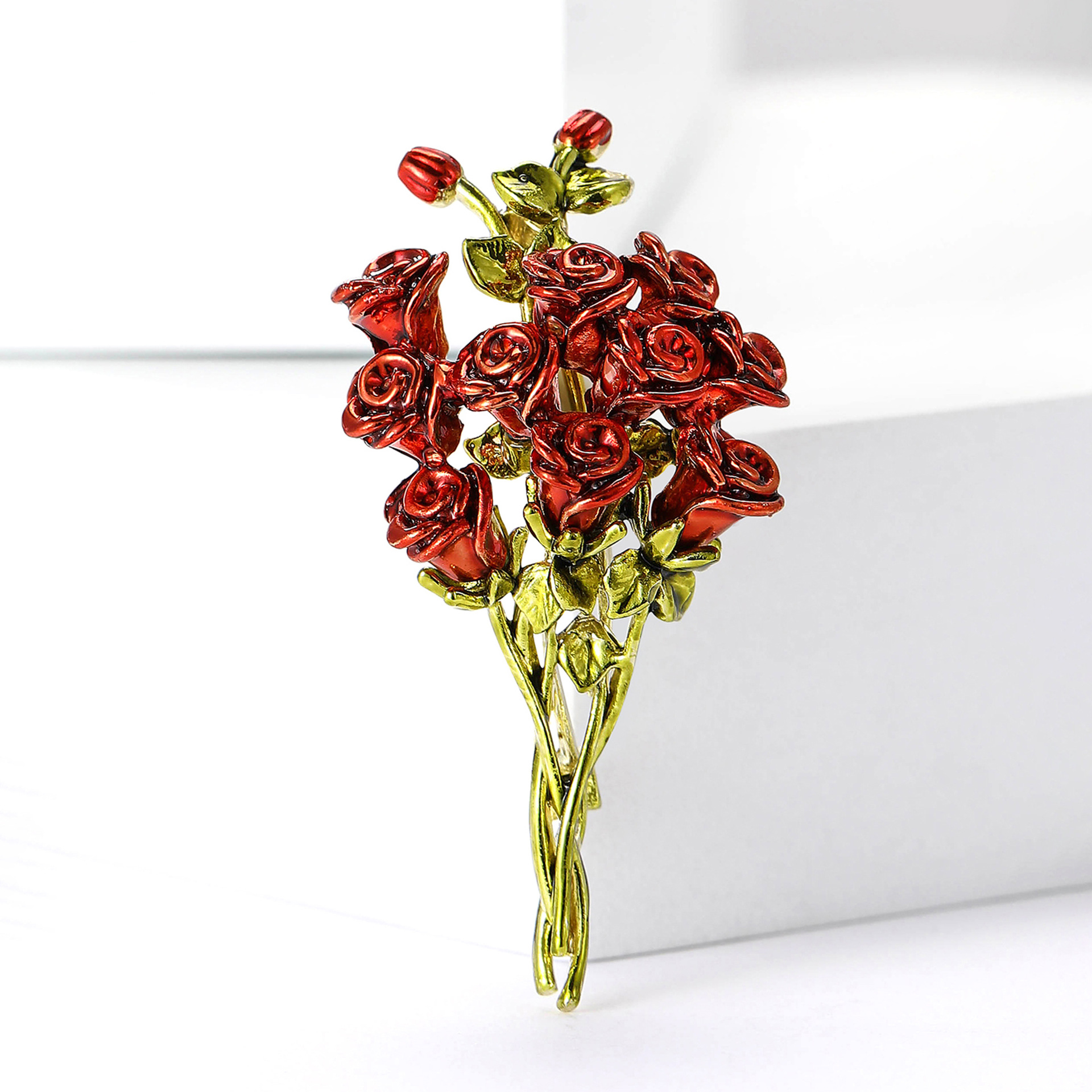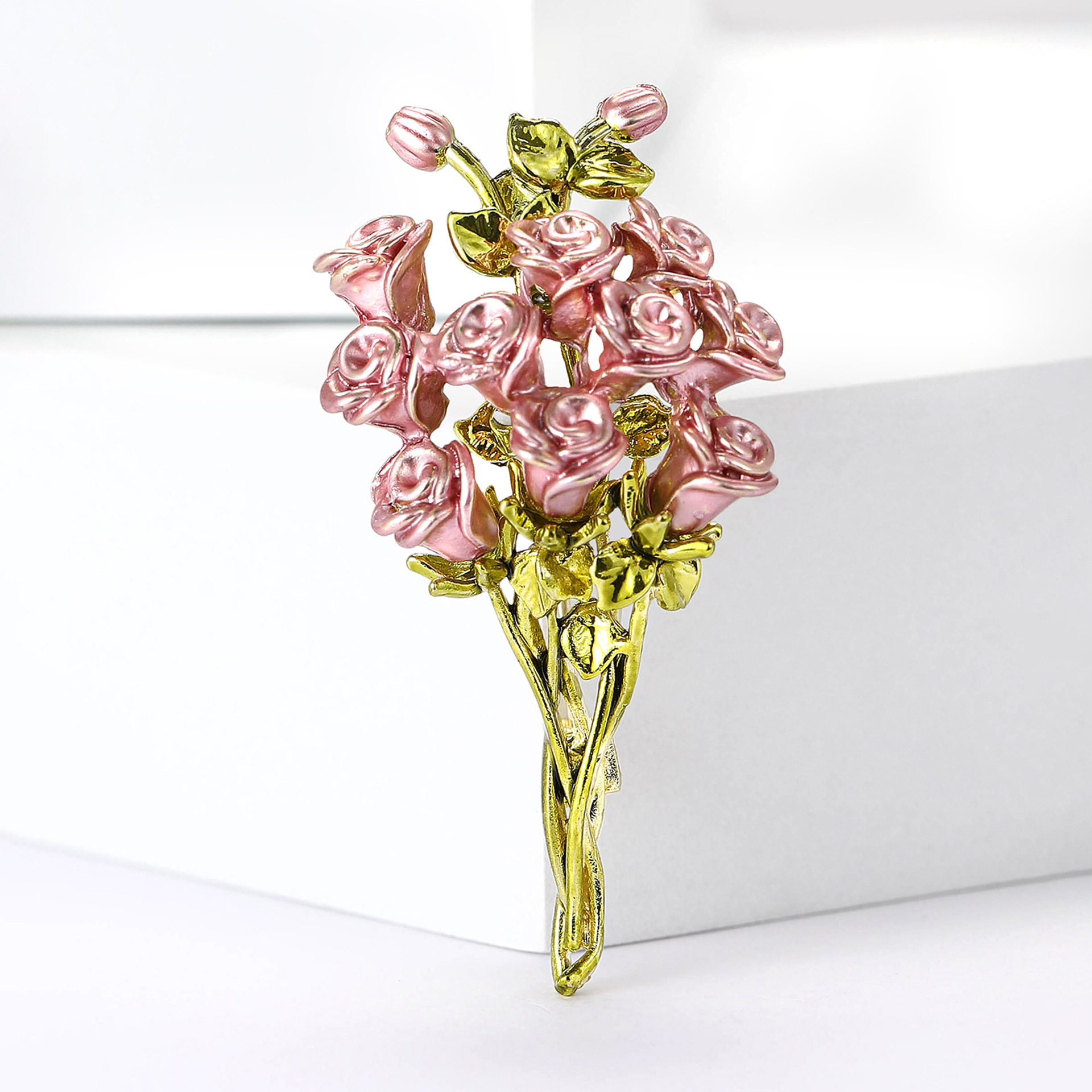 新款时尚高档合金珐琅玫瑰花束胸针气质简约女士服饰胸花饰品别针