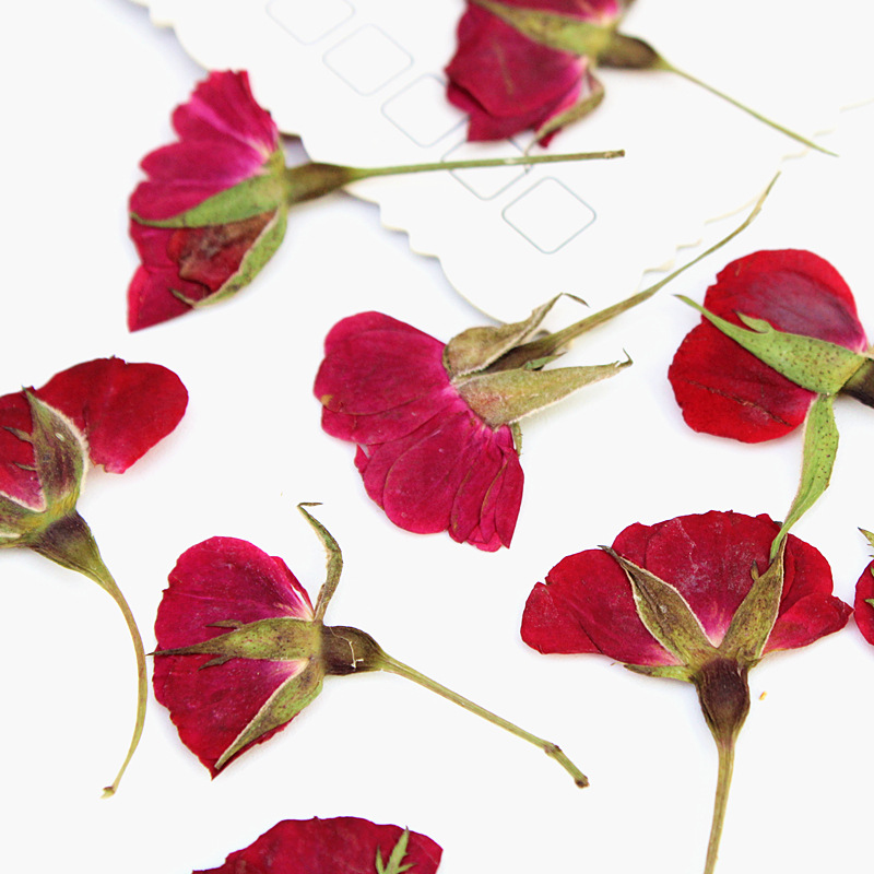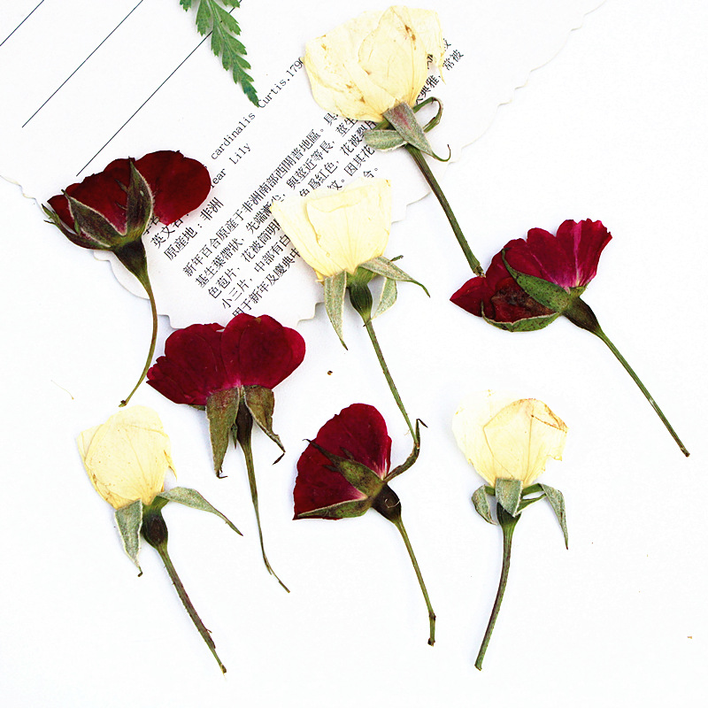 带枝侧压红玫瑰压花干花材料批发diy材料包植物标本真花树叶标本