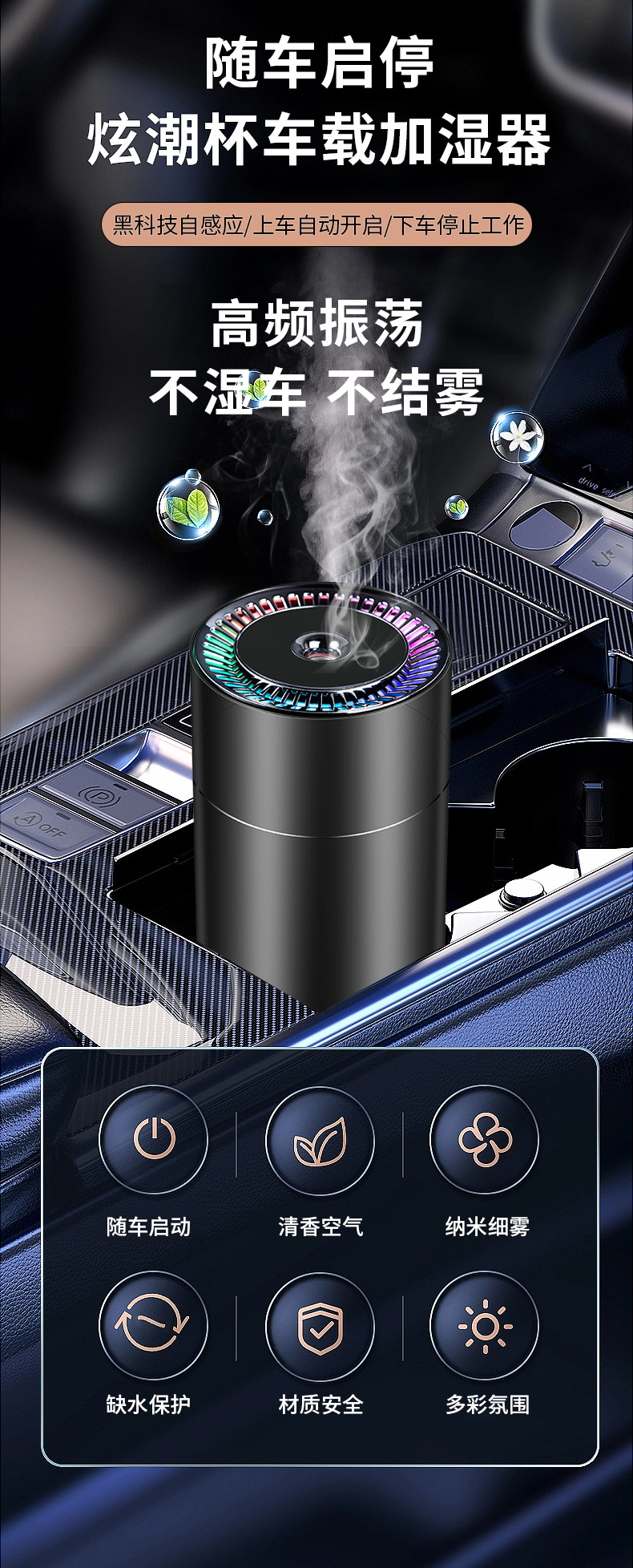新款车载加湿器净化器七彩氛围灯随车启停双喷香薰加湿器礼品批发 投诉