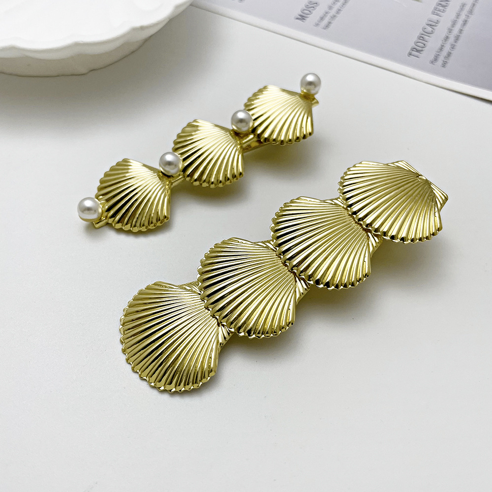 欧美跨境ins风发夹侧边顶夹贝壳鸭嘴夹发饰珍珠边夹发饰头饰