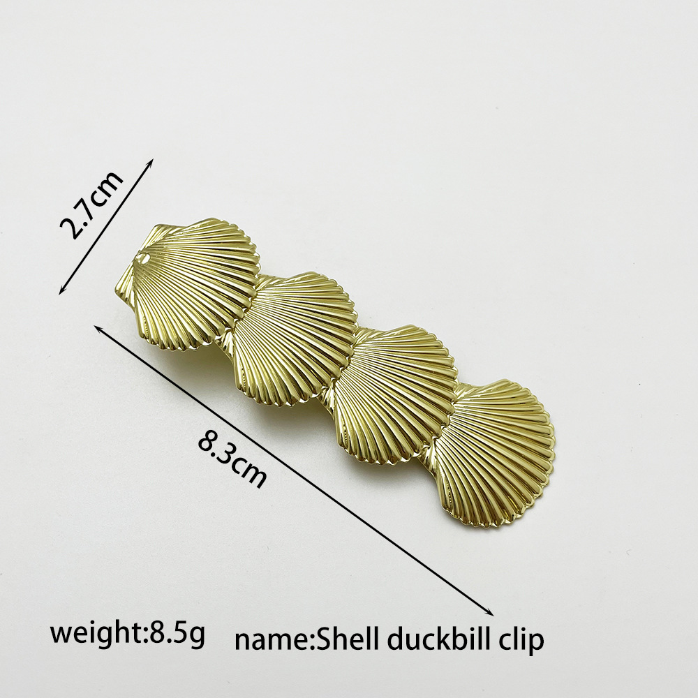 材质: 金属 货号: B0075F 品牌: 梦妮娜 处理工艺: 电镀 发夹分类: 鸭嘴夹 产地: 义乌 主要下游平台: ebay,亚马逊,LINIO,SHEIN 颜色: B0075F贝壳4片,B0075F珍珠贝 有可授权的自有品牌: 否 是否跨境出口专供货源: 是 重量: 0.02 kg/个 装箱信息:长宽高:60X45X45cm 装箱重量: 18KG 装箱数量:1200pcs