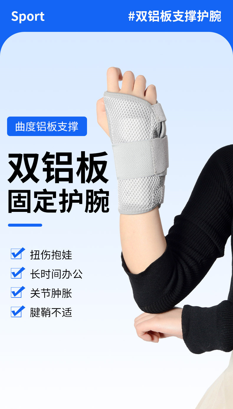 曲度铝板支撑护腕扭伤腱鞘骨折保护健身篮球加压手腕固定器批发