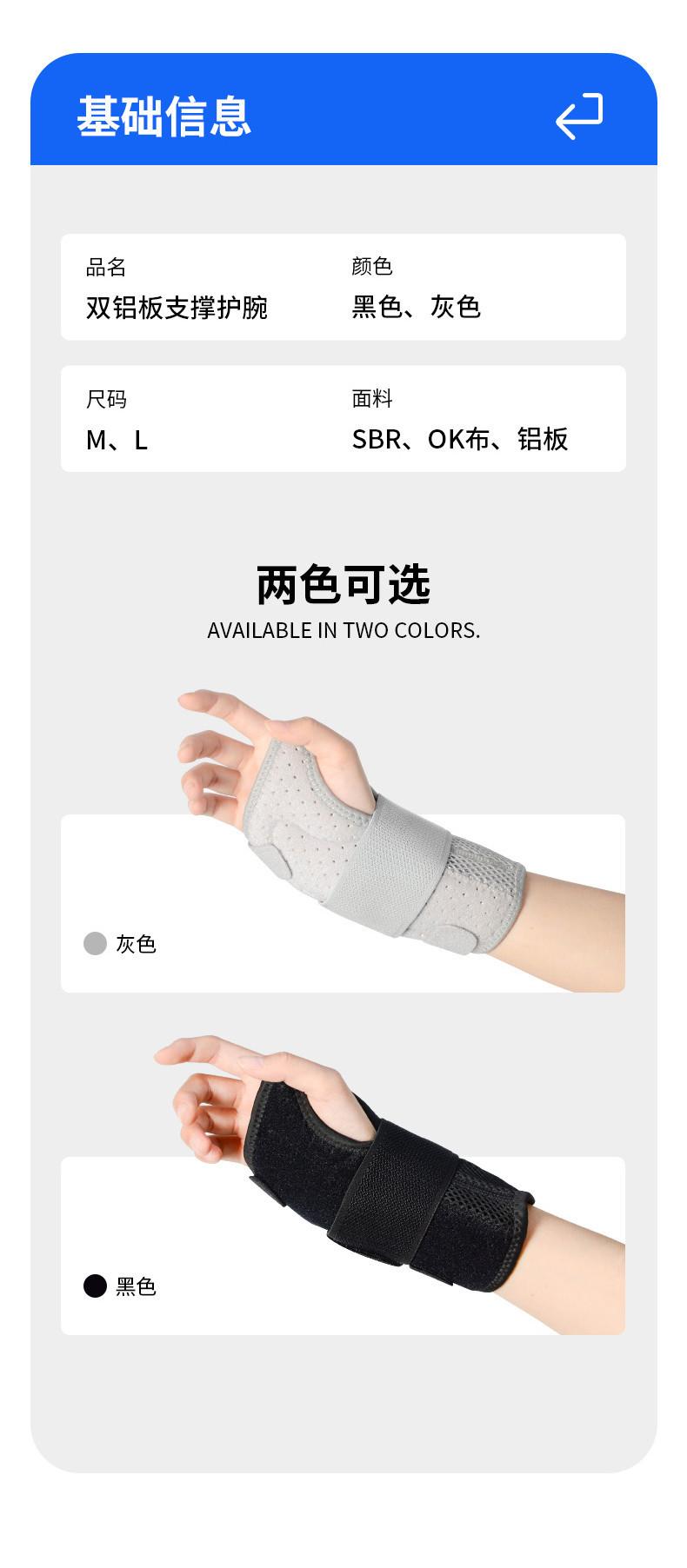 品牌: 安欣 货号: 5910 主体材质: SBR、OK布、铝板 适用人群: 通用 适用运动: 辅助 箱装数量: 按需 适用场景: 跑步运动,健身器材,保健按摩,健身美体, 规格: 黑色-左手【单支装】,黑色-右手【单支装 是否跨境出口专供货源: 否 专利类型: 无 重量: 0.1 kg/个