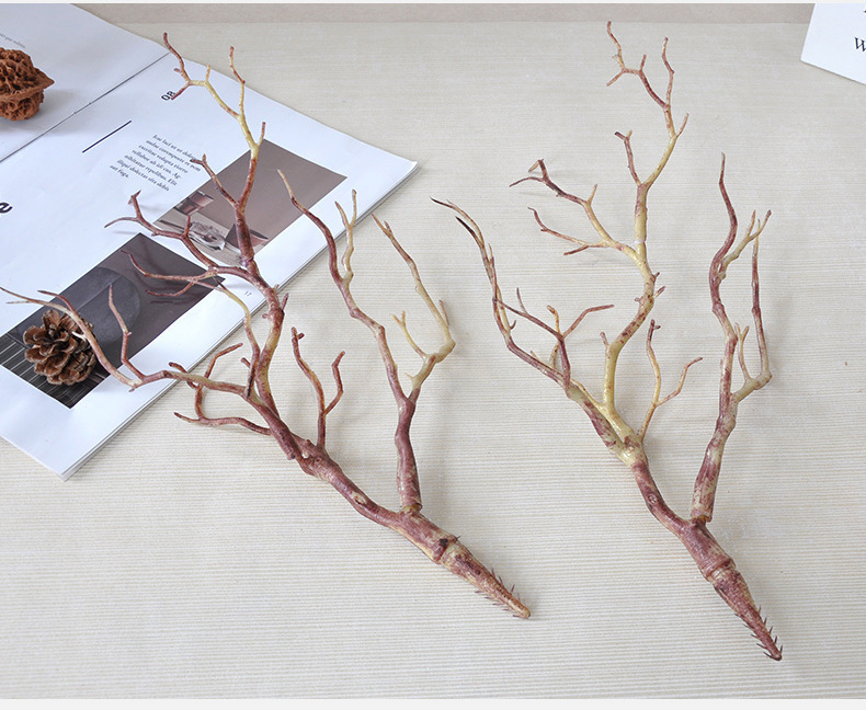 跨境35cm塑料材质手工材料森系diy 仿真干小树枝鹿角珊瑚头饰配件