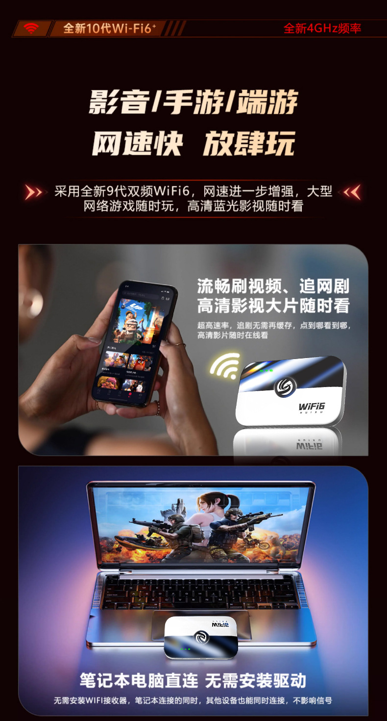 厂家直销】2025移动随身WiFi便携式免插卡4G户外路由器上网直播 English | 投诉