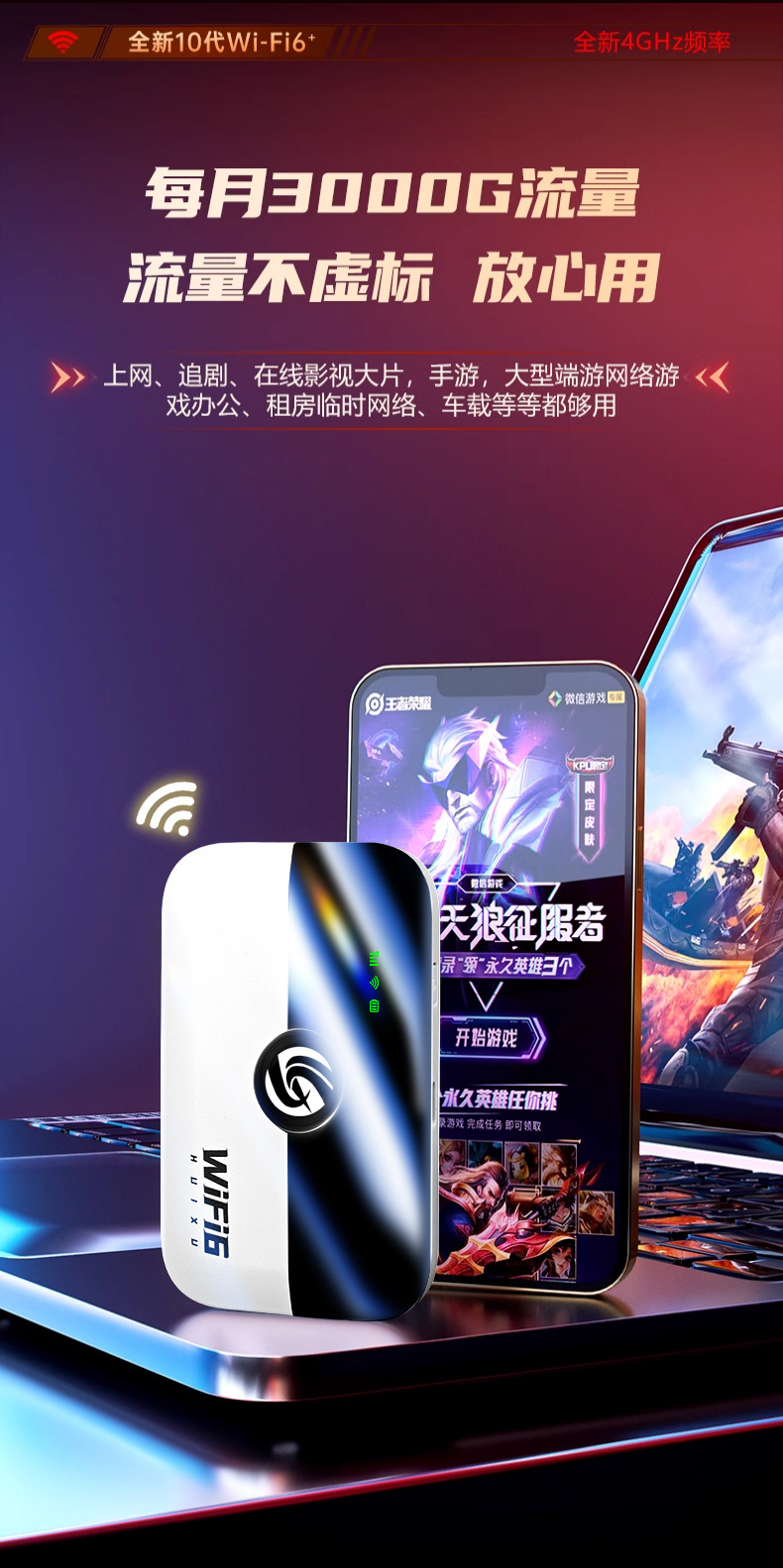 随身WiFi6旗舰版+3000毫安大电池【超长续航+网速稳定不丢包】 ¥5625 4996台可售