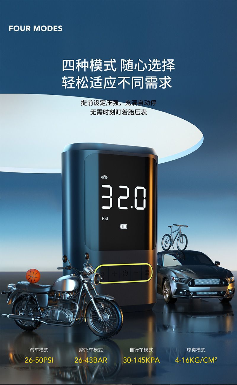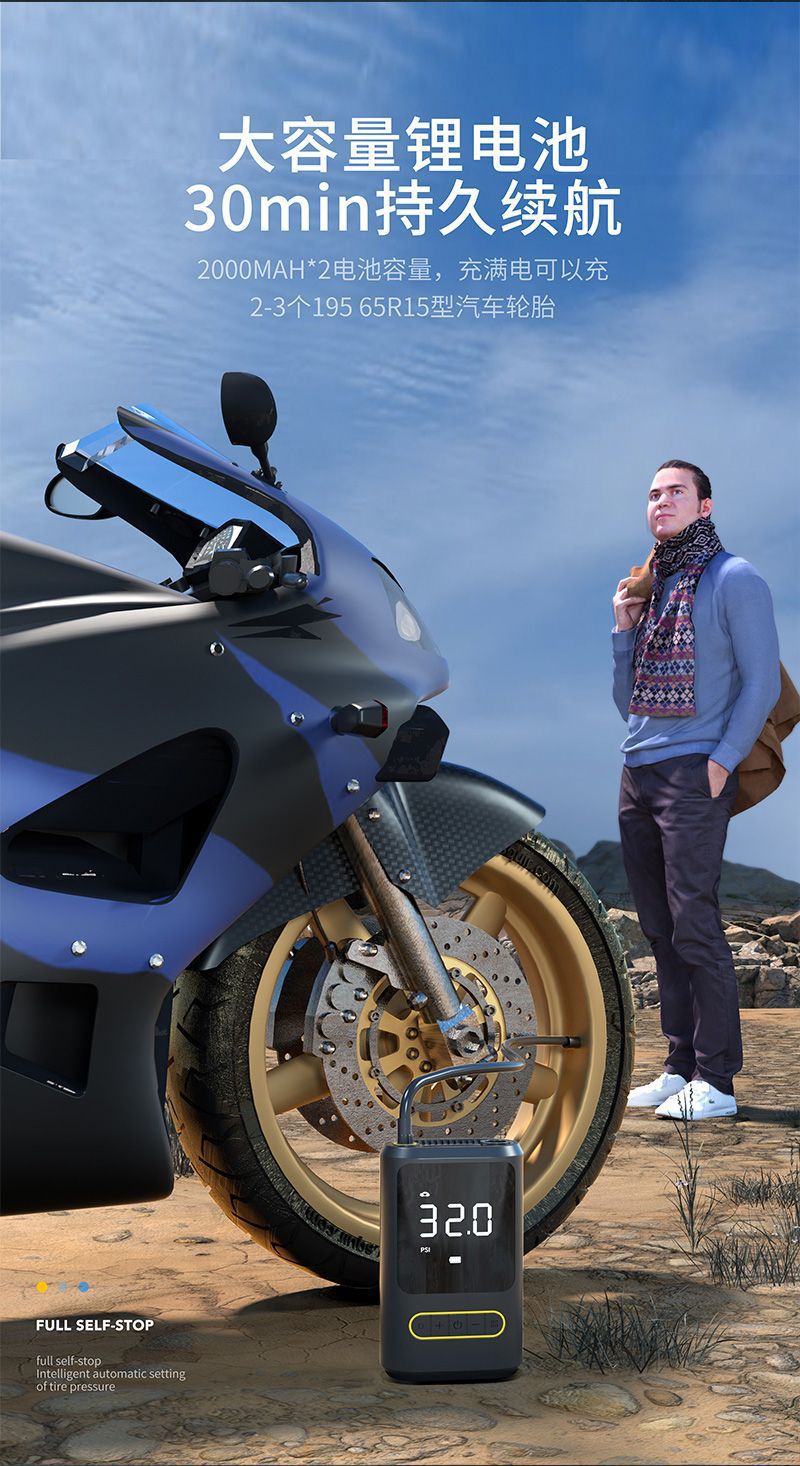 爆款充气泵便携式手持无线充电充气泵双电源款迷你汽车轮胎打气筒 English | 投诉