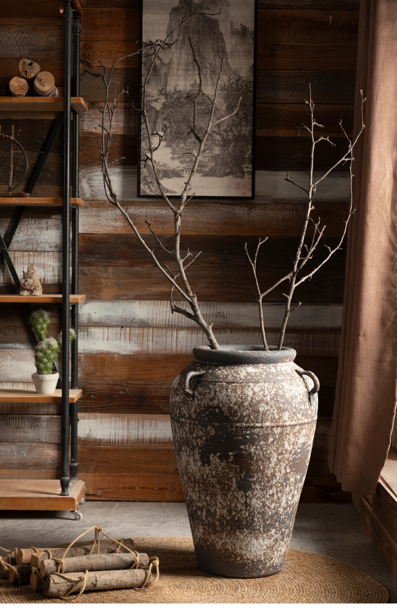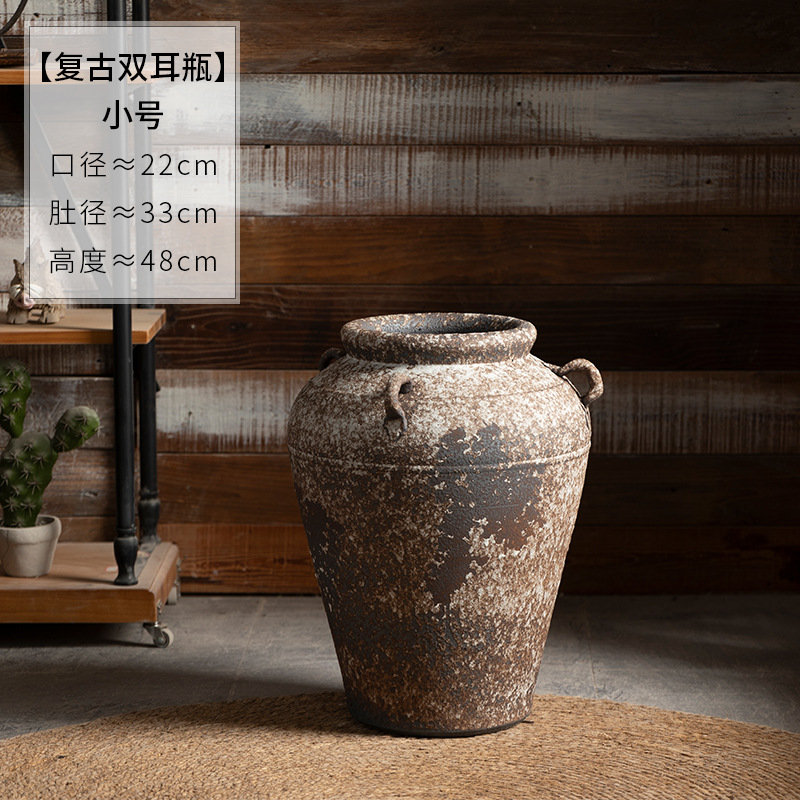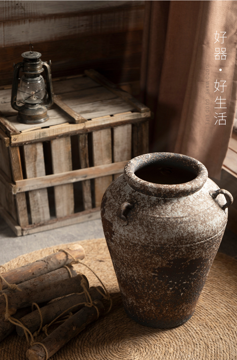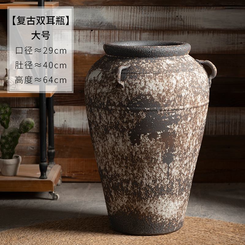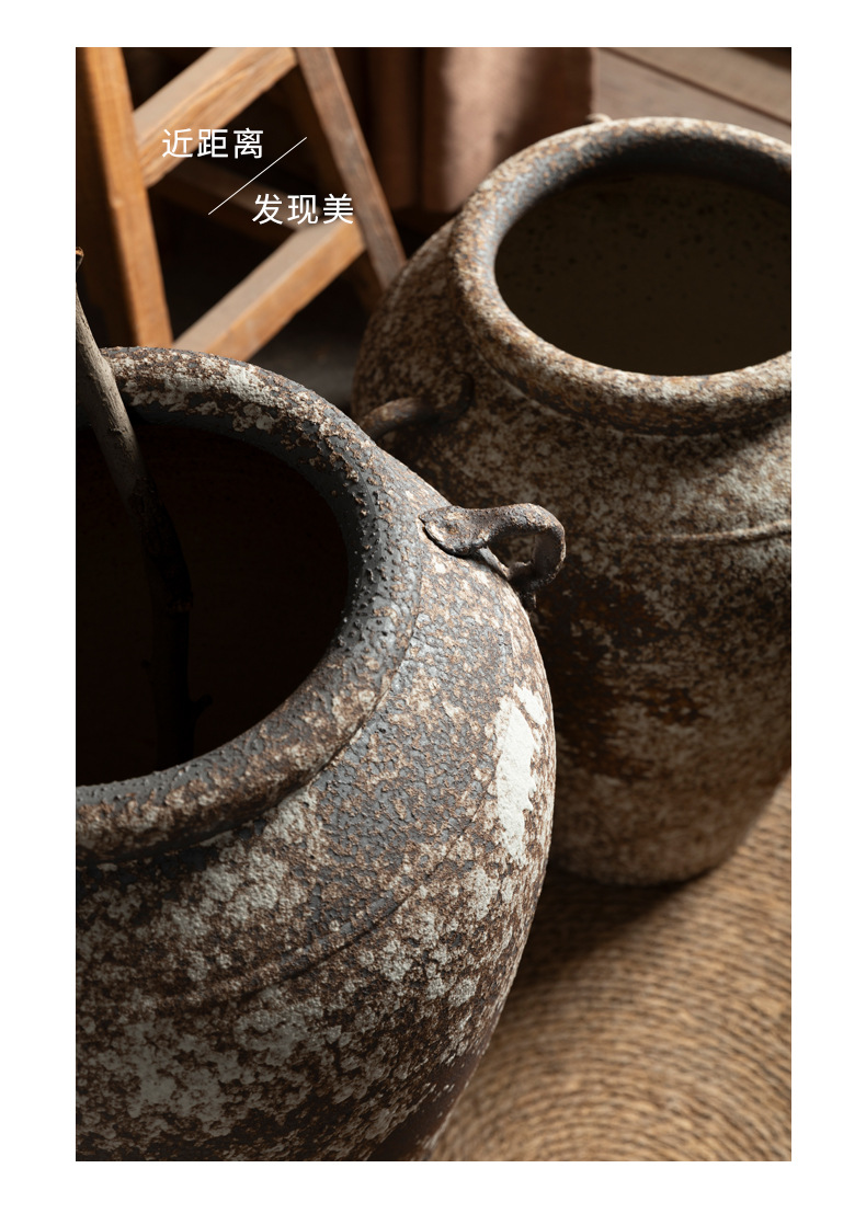景德镇侘寂风落地花瓶斑驳耳朵款粗陶摆件客厅酒店民宿复古装饰品 English | 投诉