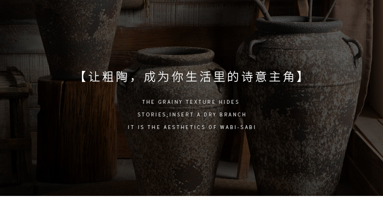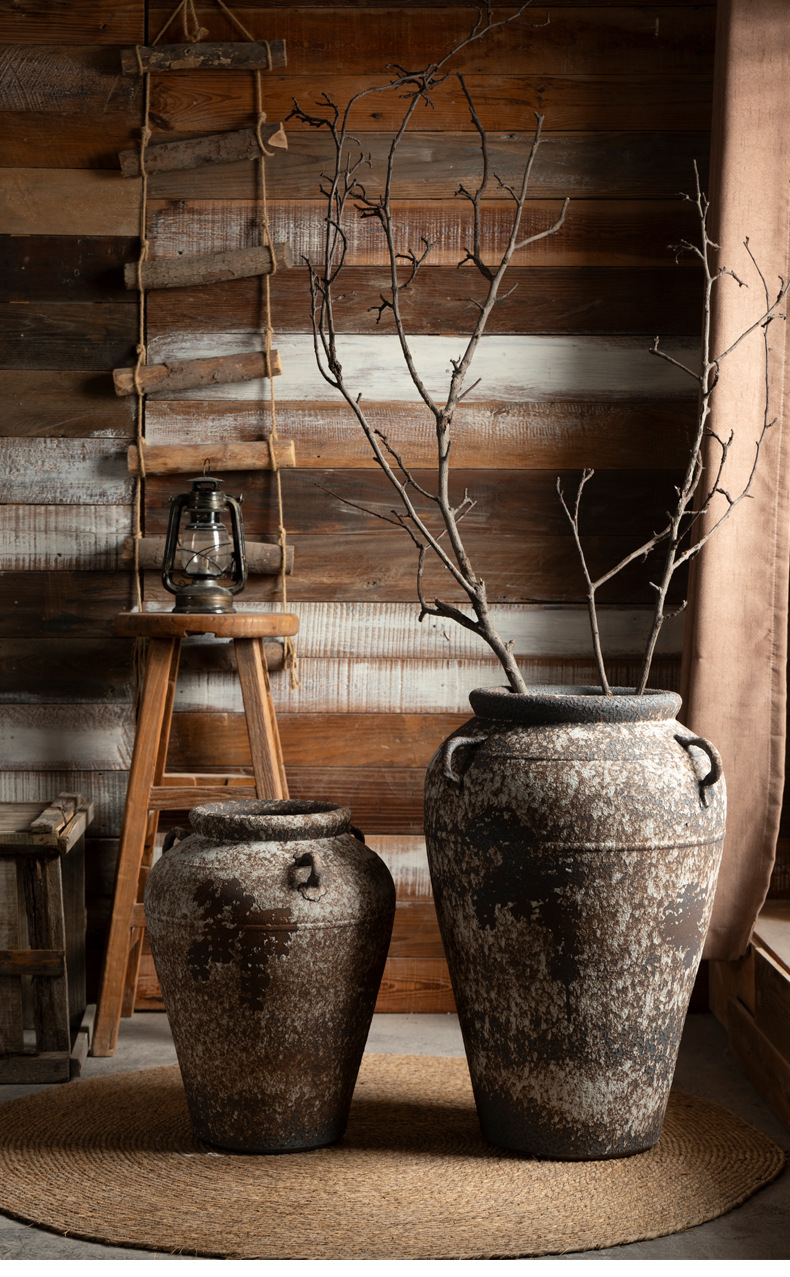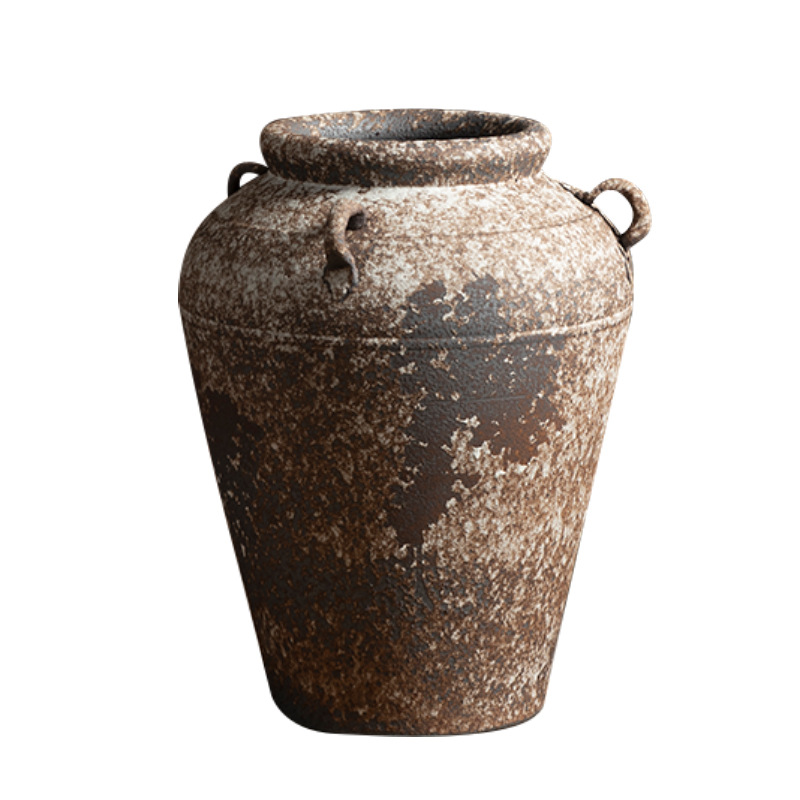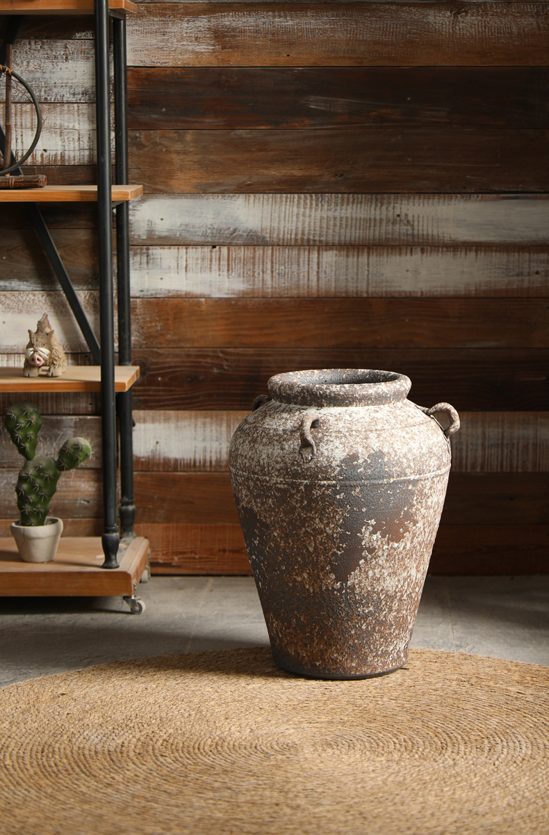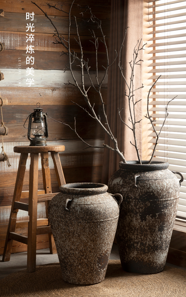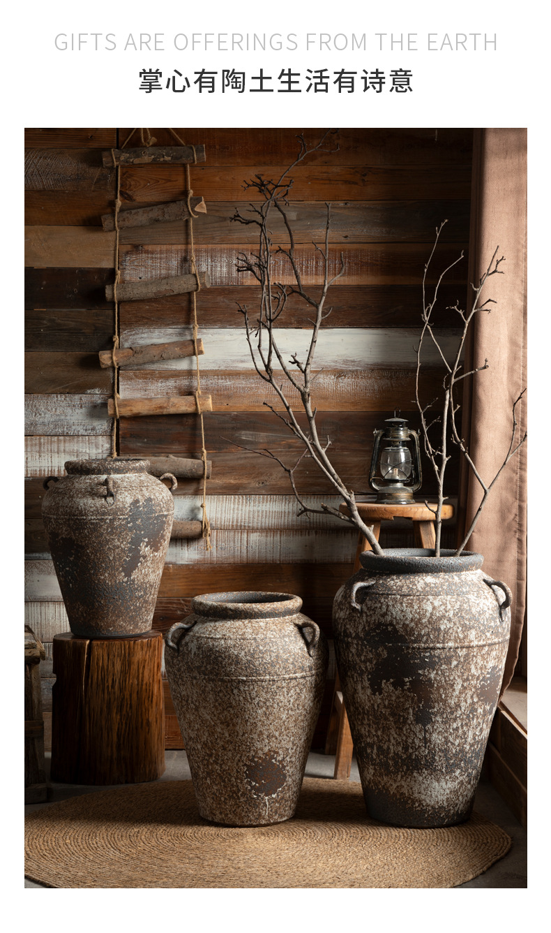 景德镇侘寂风落地花瓶斑驳耳朵款粗陶摆件客厅酒店民宿复古装饰品 English | 投诉