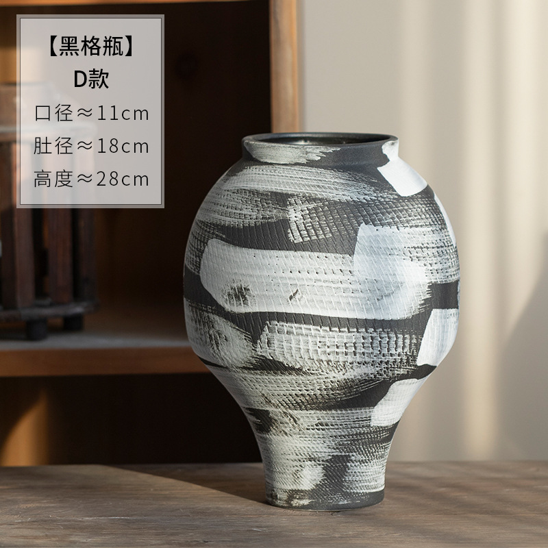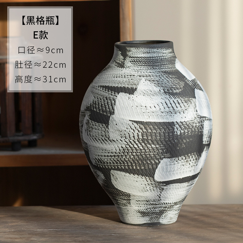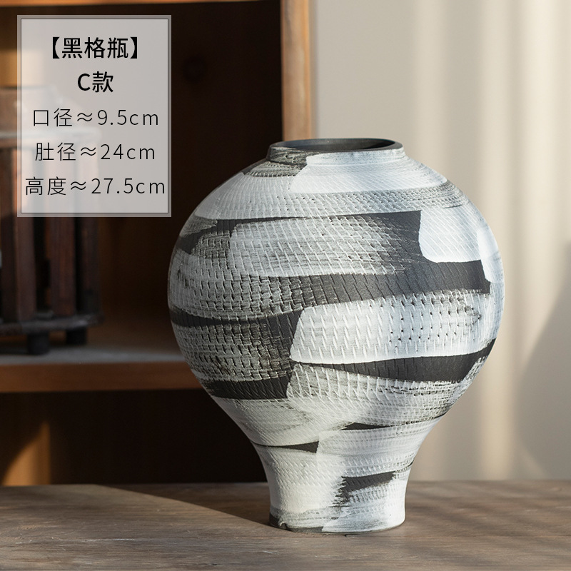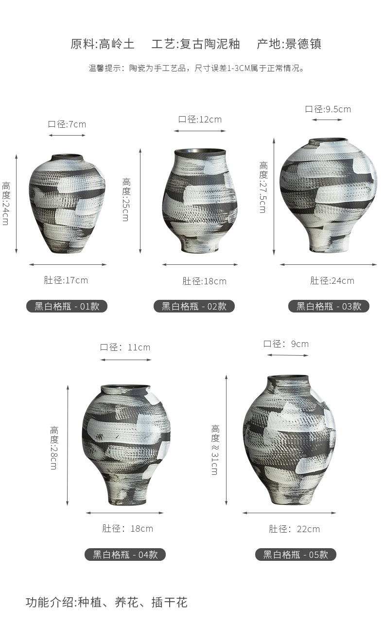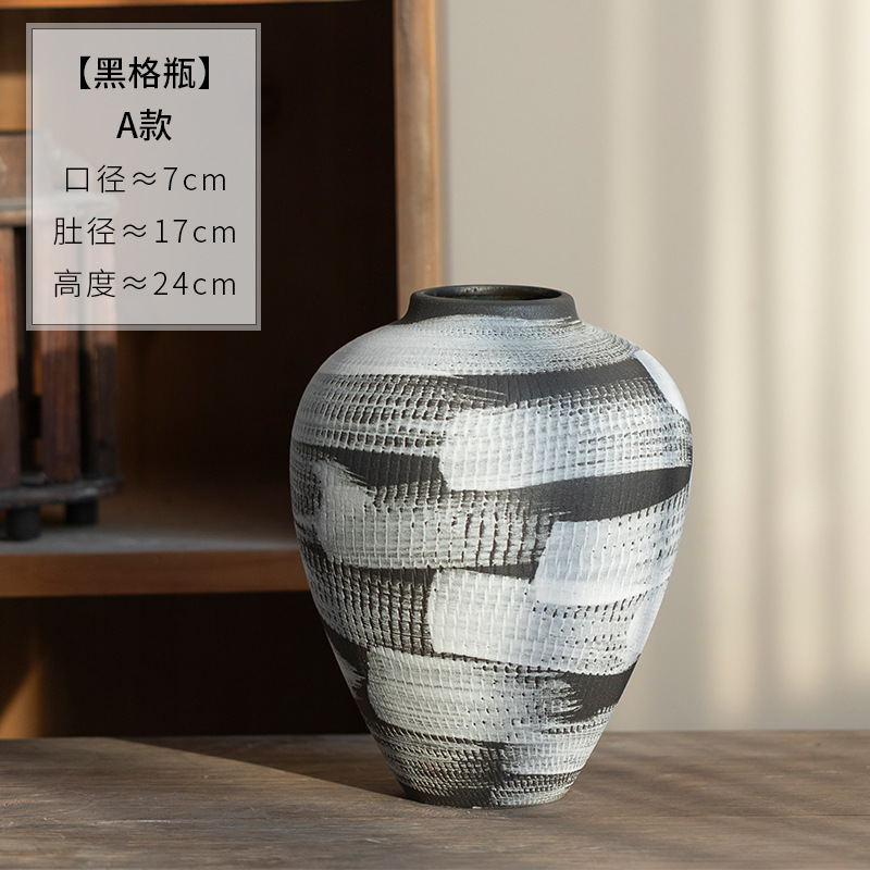 景德镇现代简约花瓶黑白格纹轻奢摆件客厅酒店民宿水培装饰品陶罐 English | 投诉