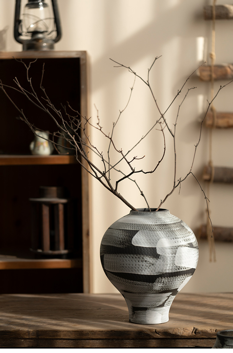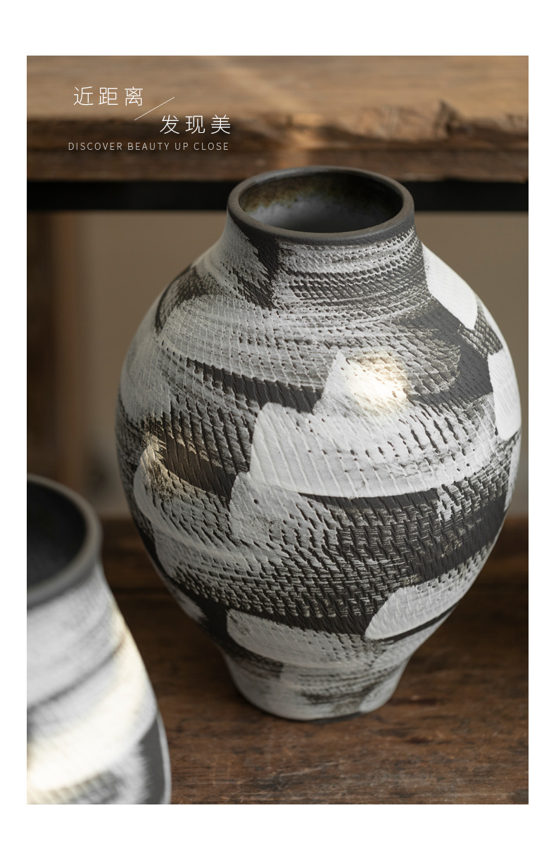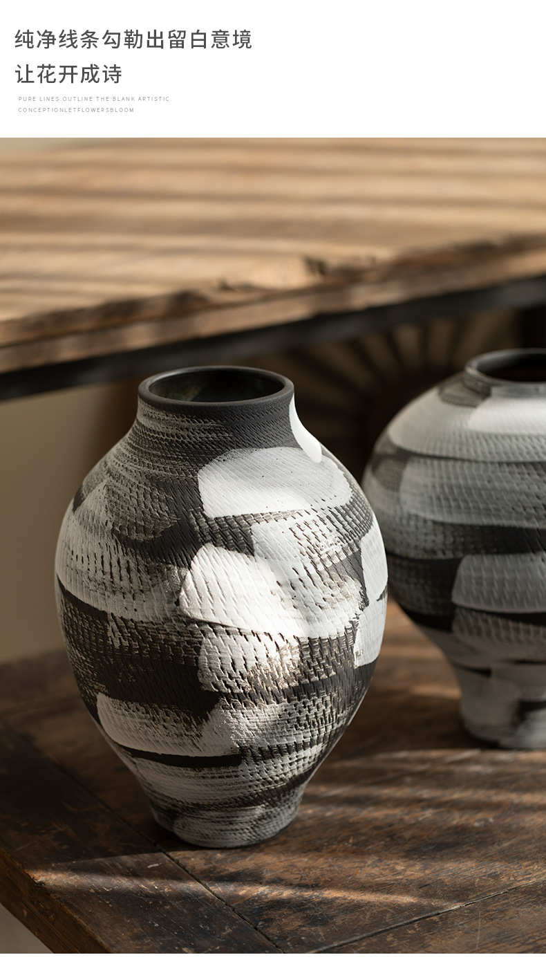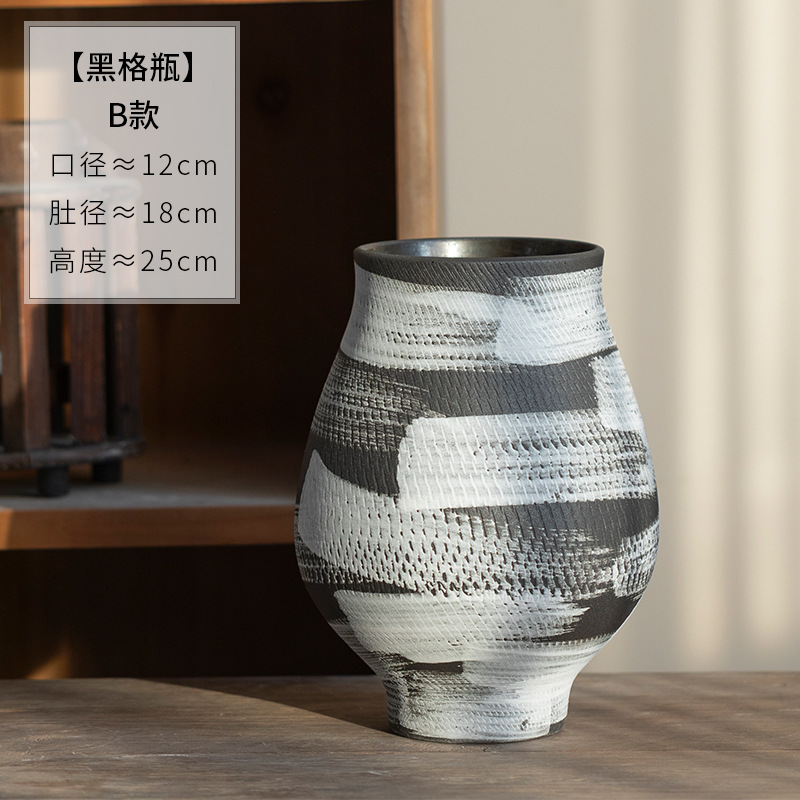 景德镇现代简约花瓶黑白格纹轻奢摆件客厅酒店民宿水培装饰品陶罐 English | 投诉
