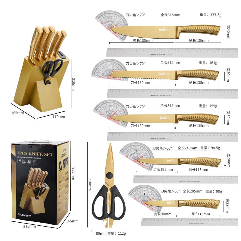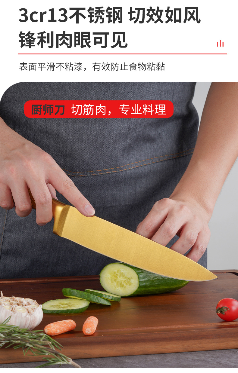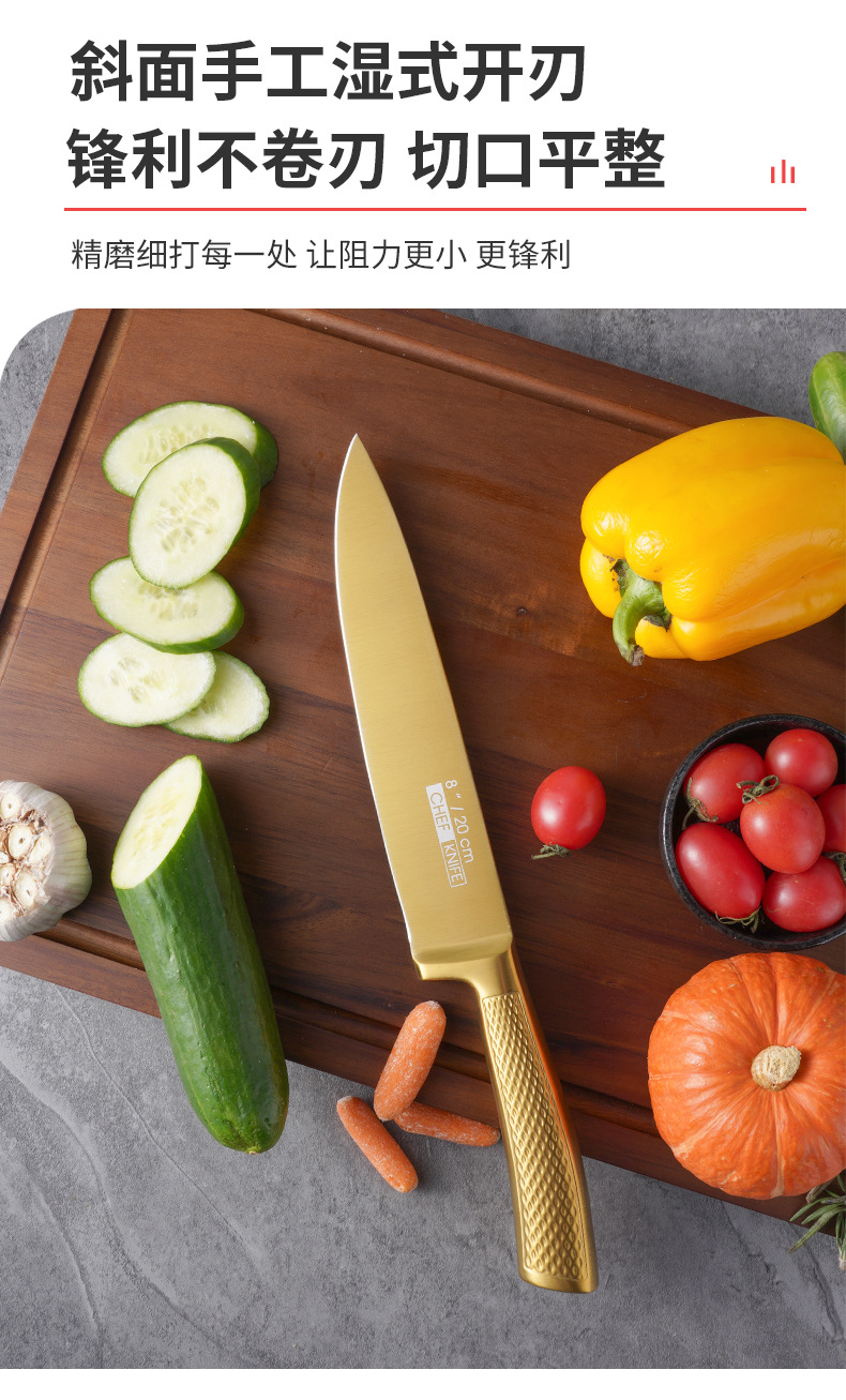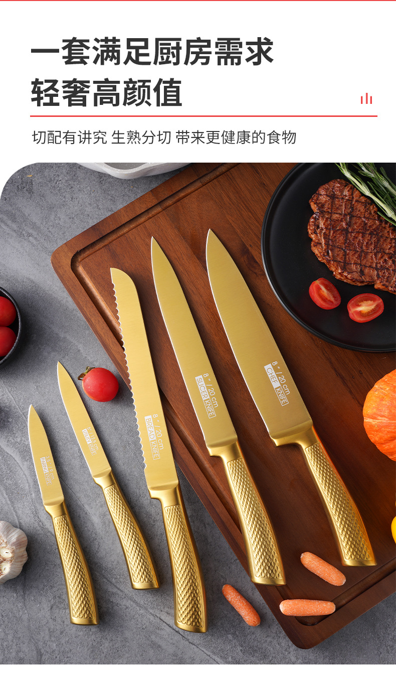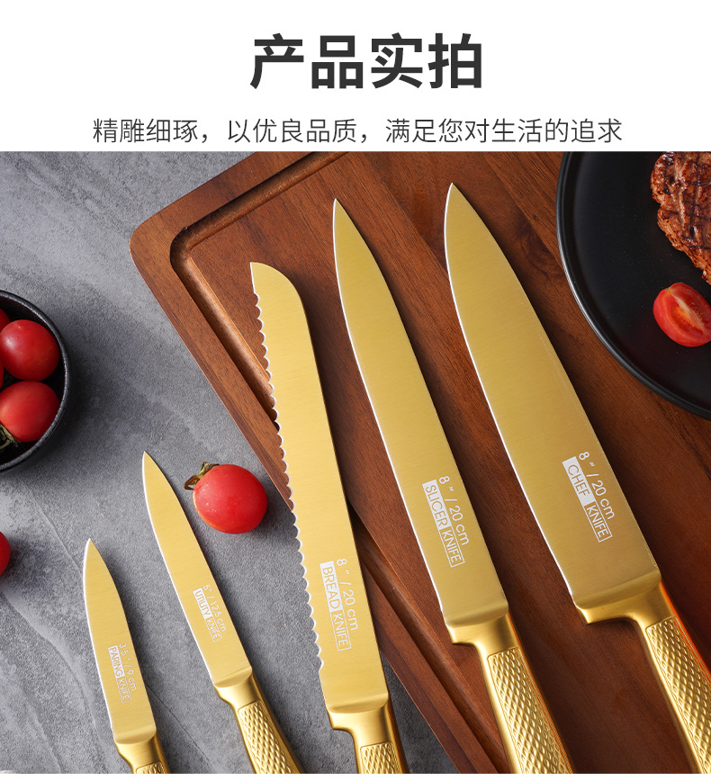 家美康刀具套装 跨境镀钛金色8件套刀厨房不锈钢厨师刀外贸礼品刀 English | 投诉