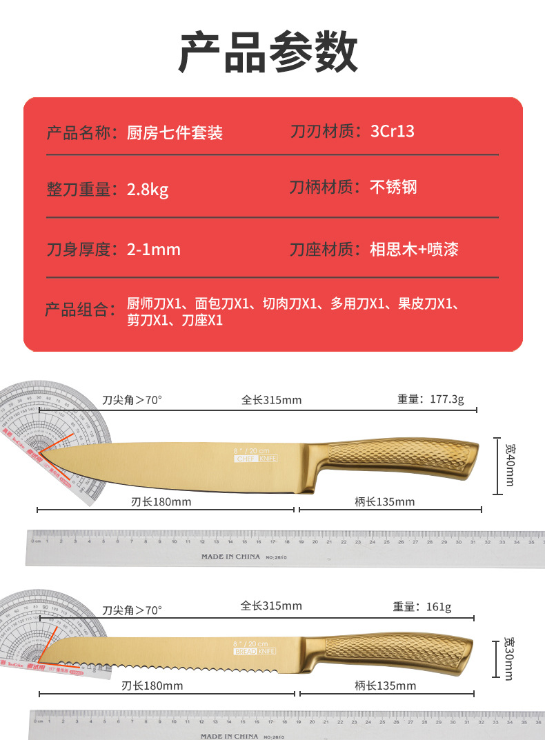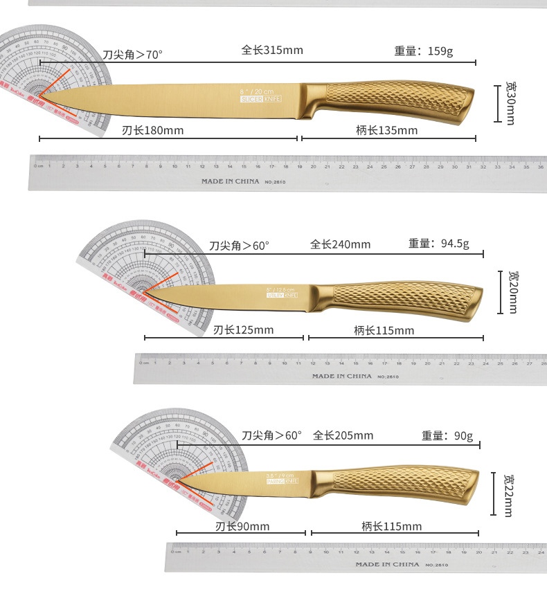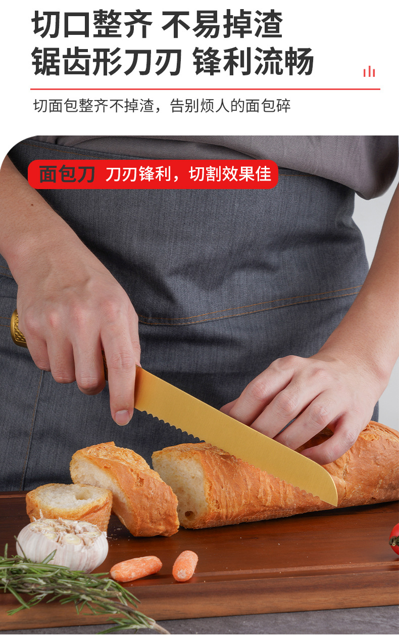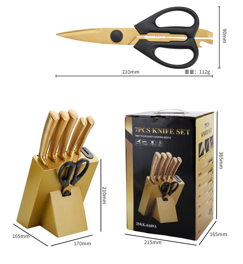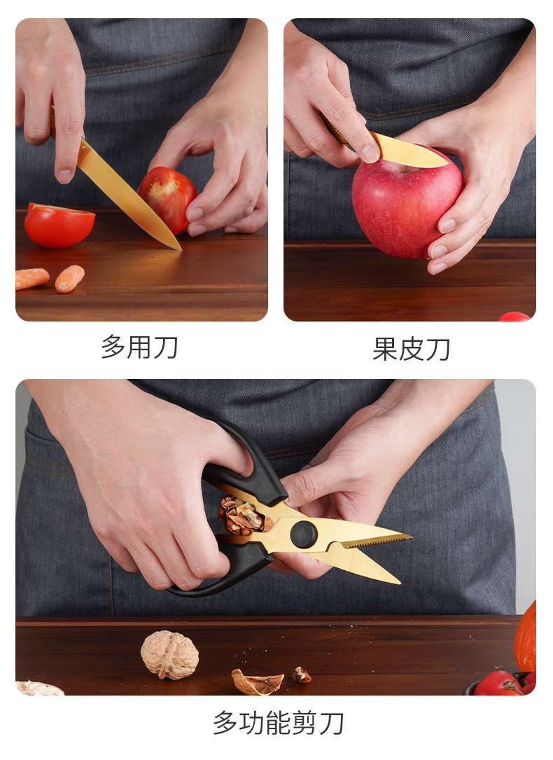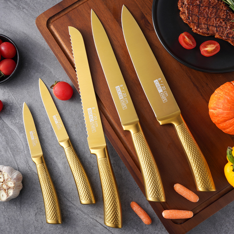家美康刀具套装 跨境镀钛金色8件套刀厨房不锈钢厨师刀外贸礼品刀 English | 投诉