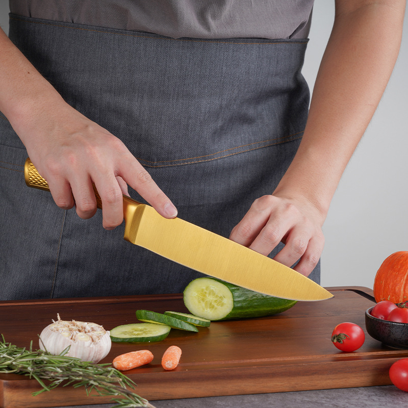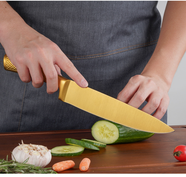 家美康刀具套装 跨境镀钛金色8件套刀厨房不锈钢厨师刀外贸礼品刀