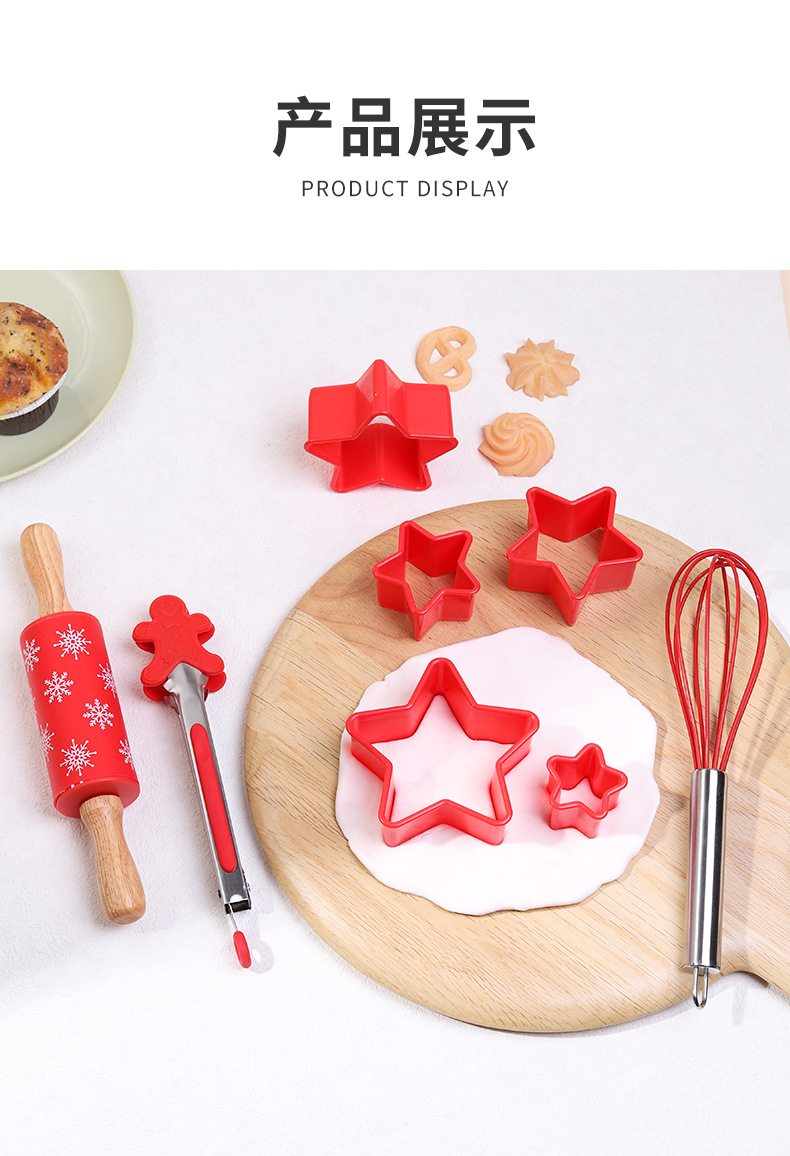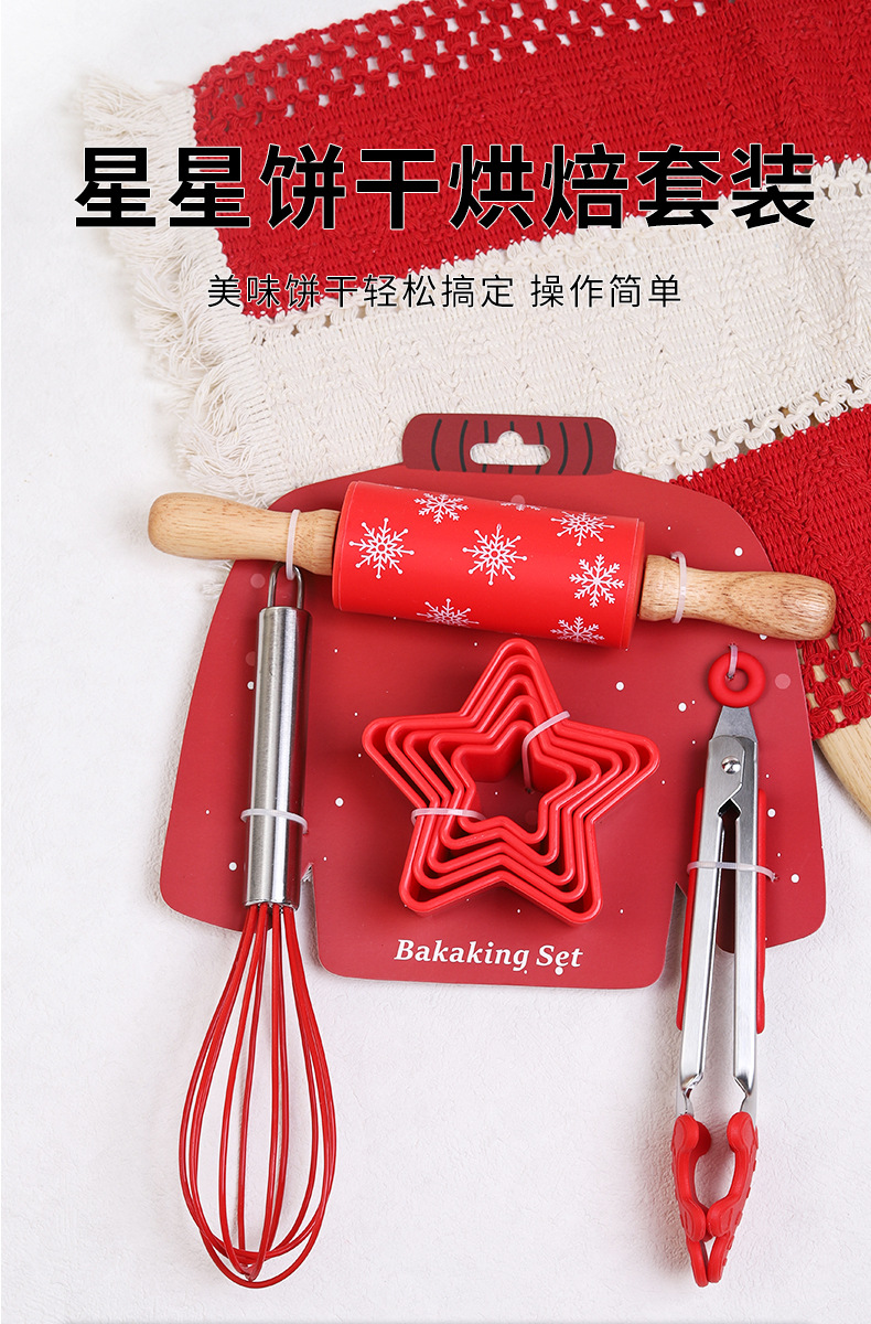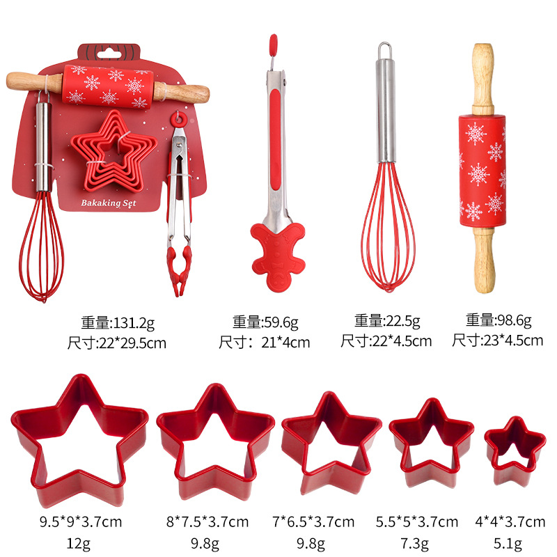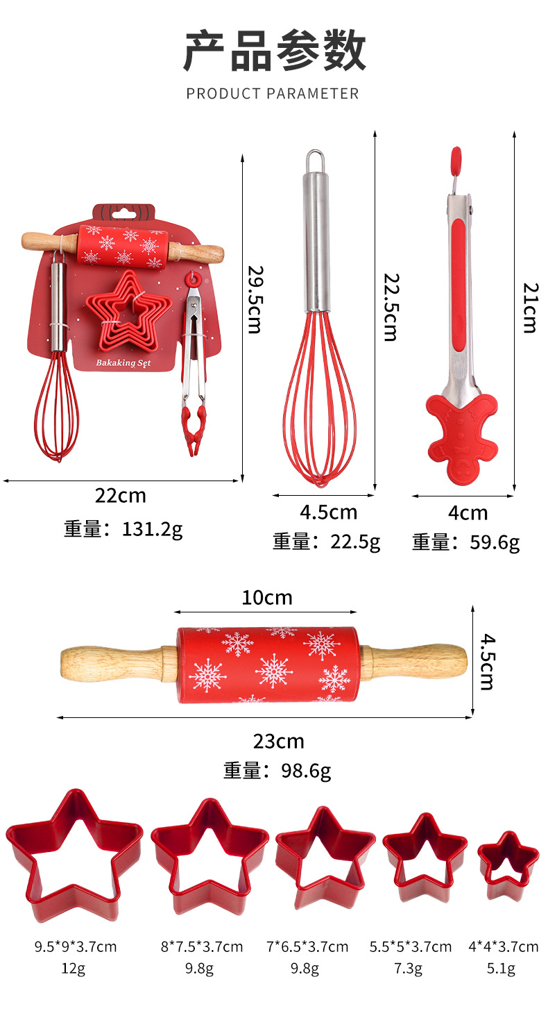 创意烘焙套装厨房家用烘焙工具组合硅胶擀面杖打蛋器食物夹饼干模 English | 投诉