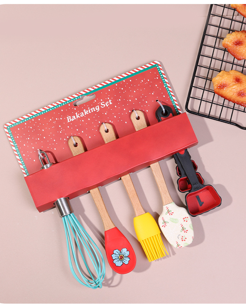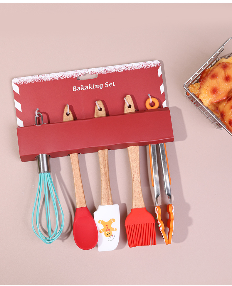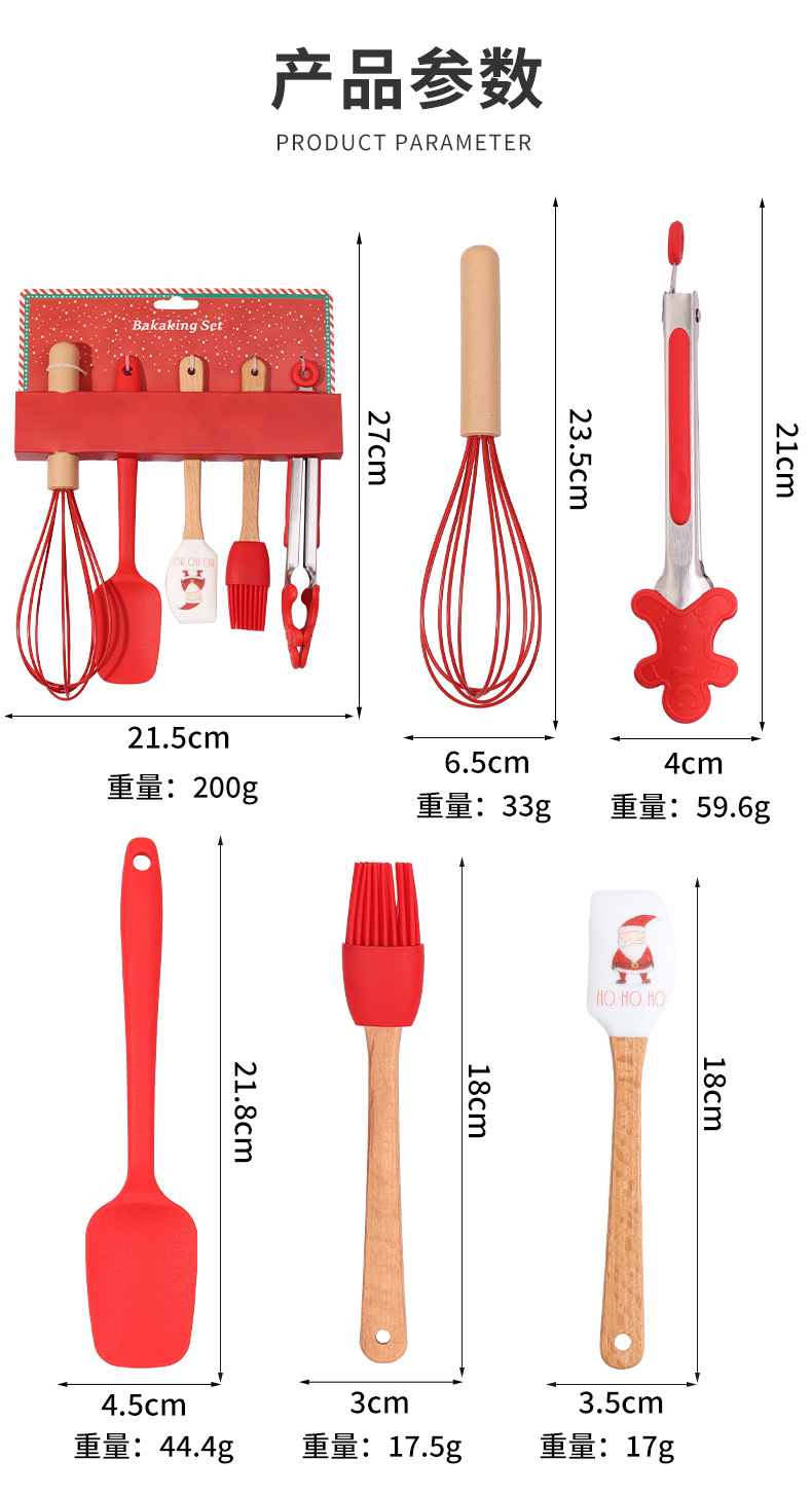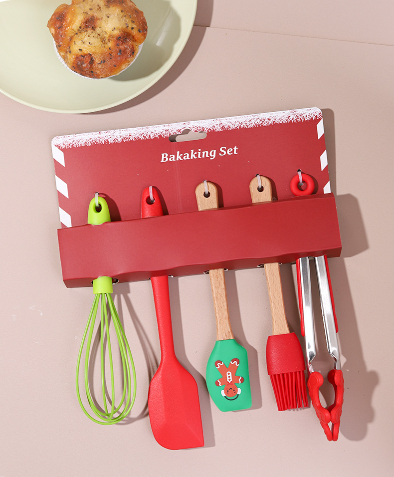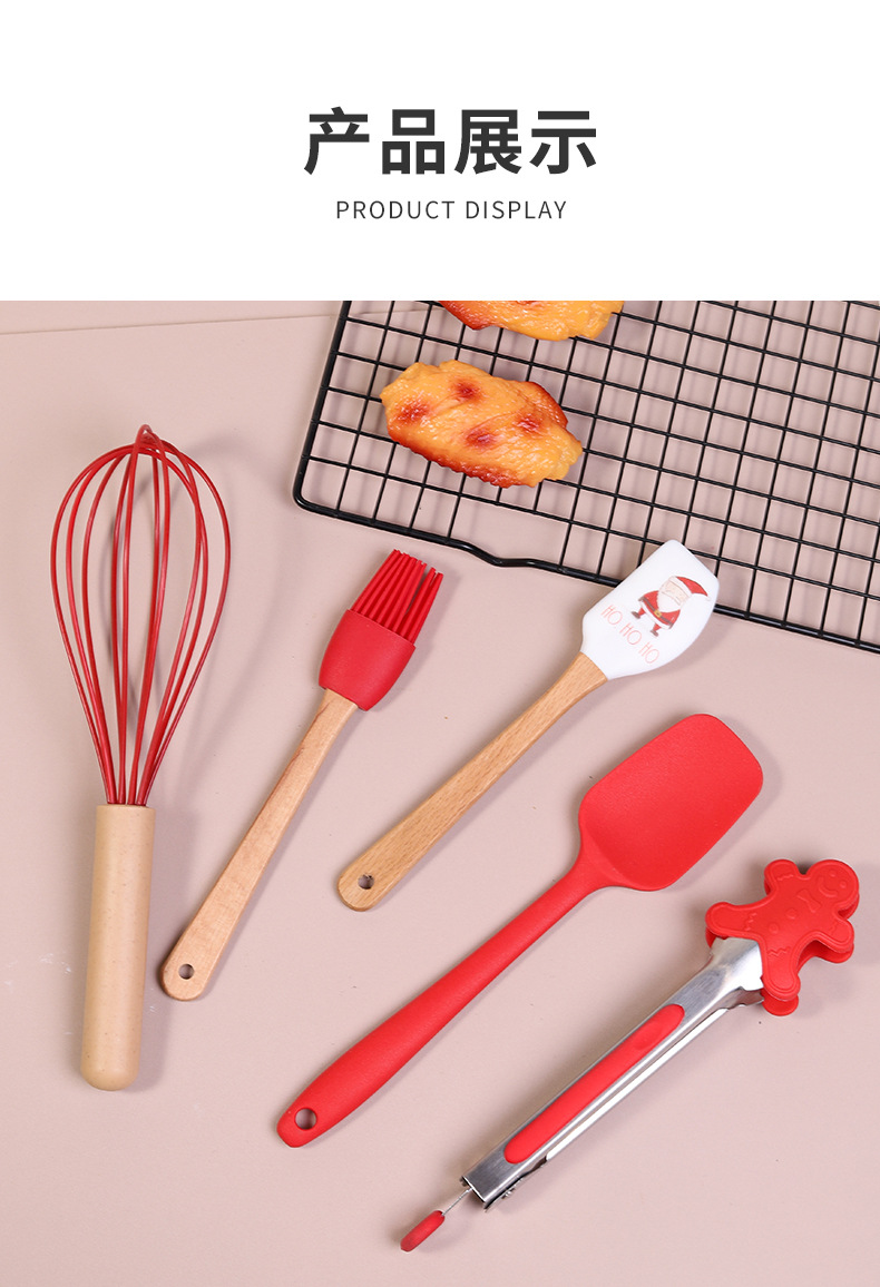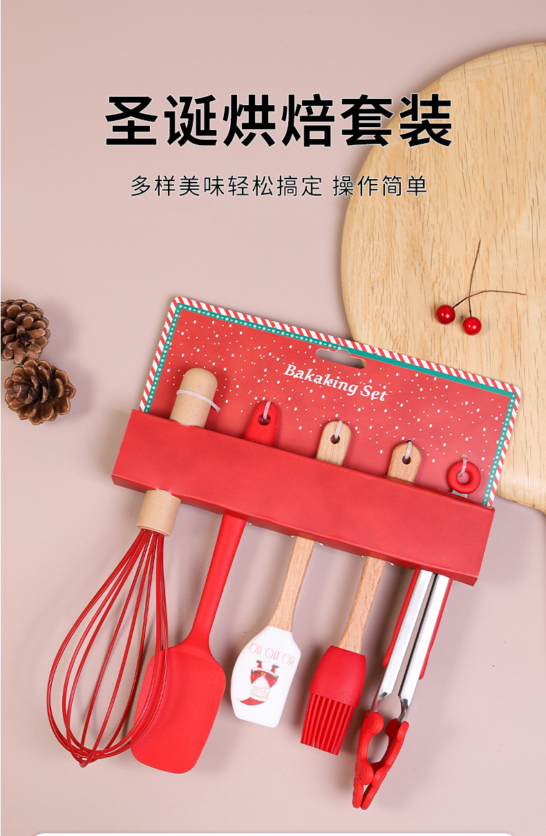 圣诞烘焙五件套家用硅胶刮刀油刷打蛋器厨房烘焙组合工具定制 English | 投诉