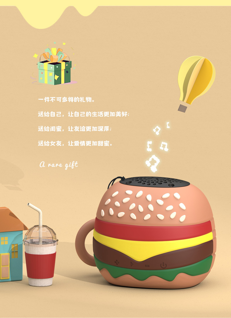 新款汉堡卡通无线蓝牙音响可爱迷你可插卡便携式高颜值伴手礼音响