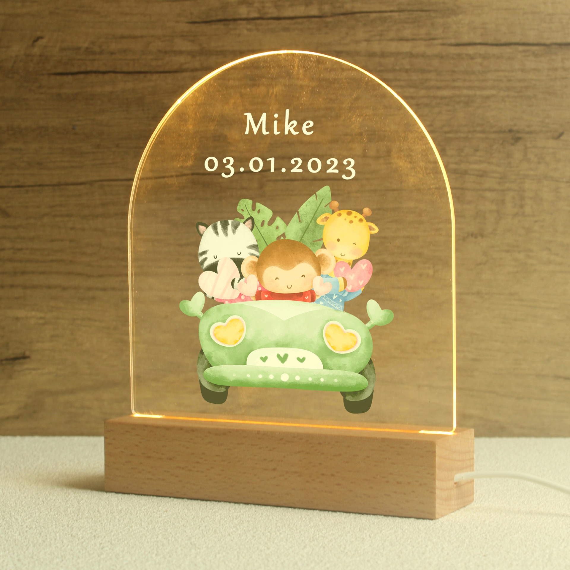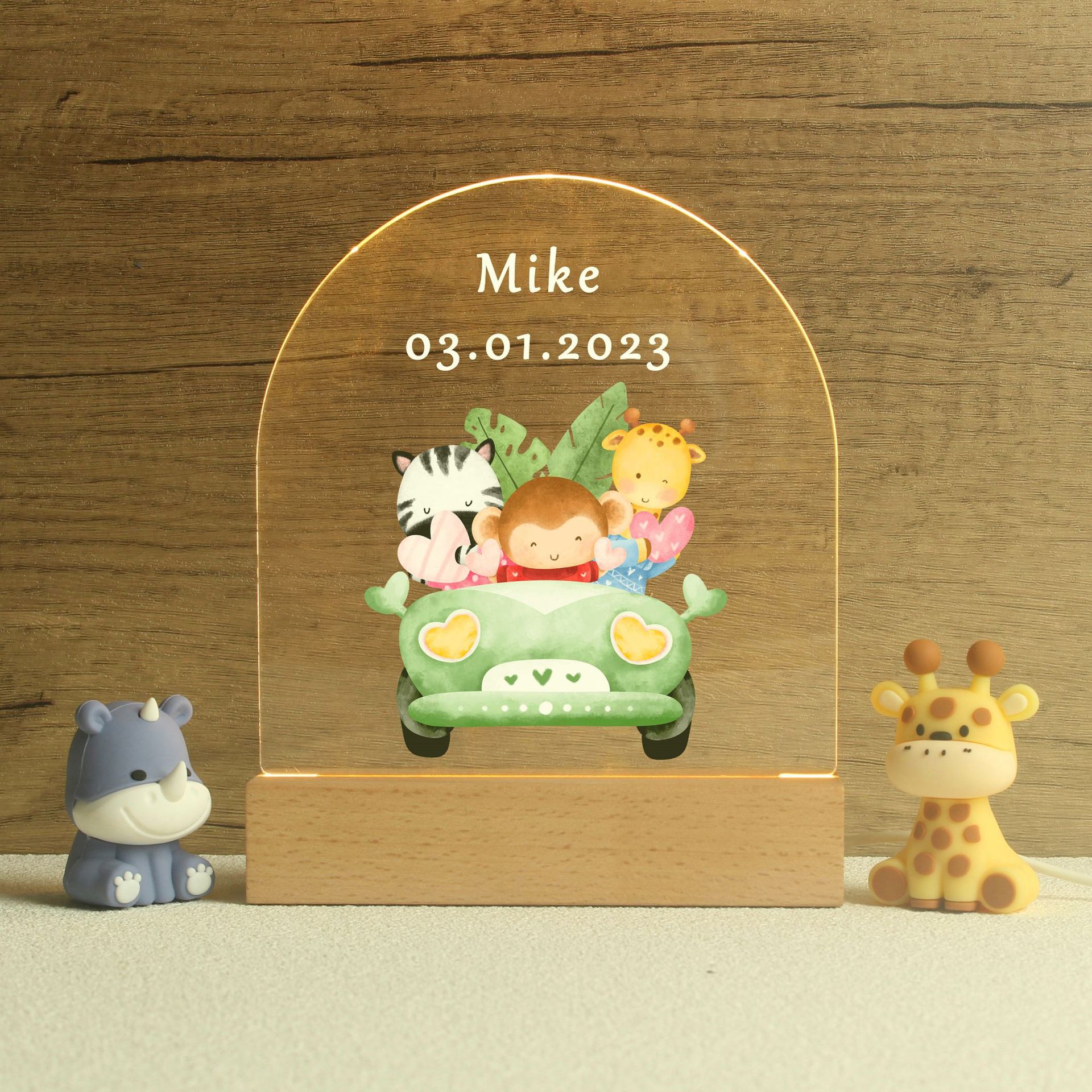 跨境儿童动物园小夜灯名字印刷亚克力生日礼物洗礼礼物摆件灯系列