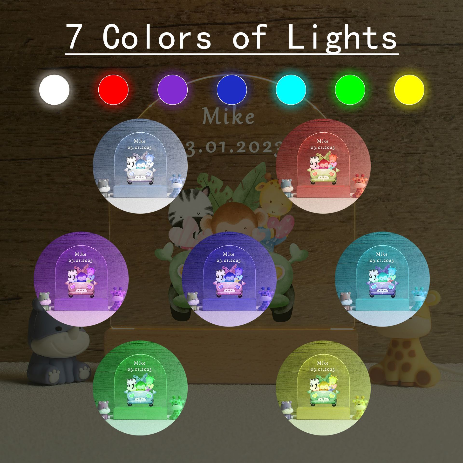 跨境儿童动物园小夜灯名字印刷亚克力生日礼物洗礼礼物摆件灯系列 English | 投诉