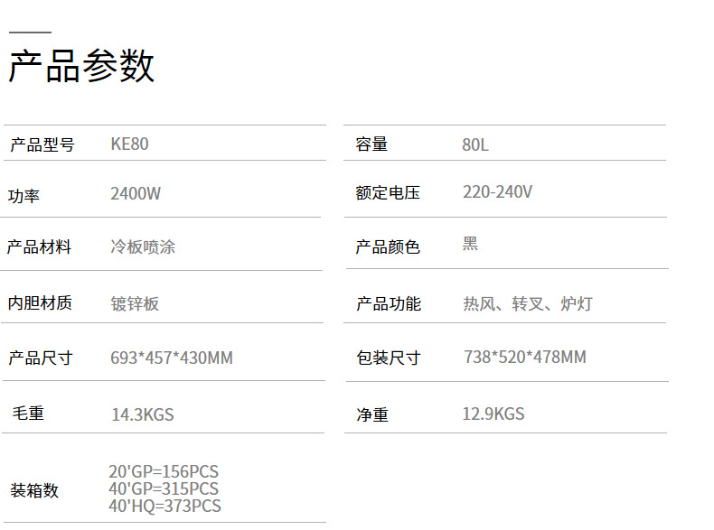 oven跨境80L电烤箱家用礼品会销大容量多功能超大烤箱烘焙电烤炉 English | 投诉