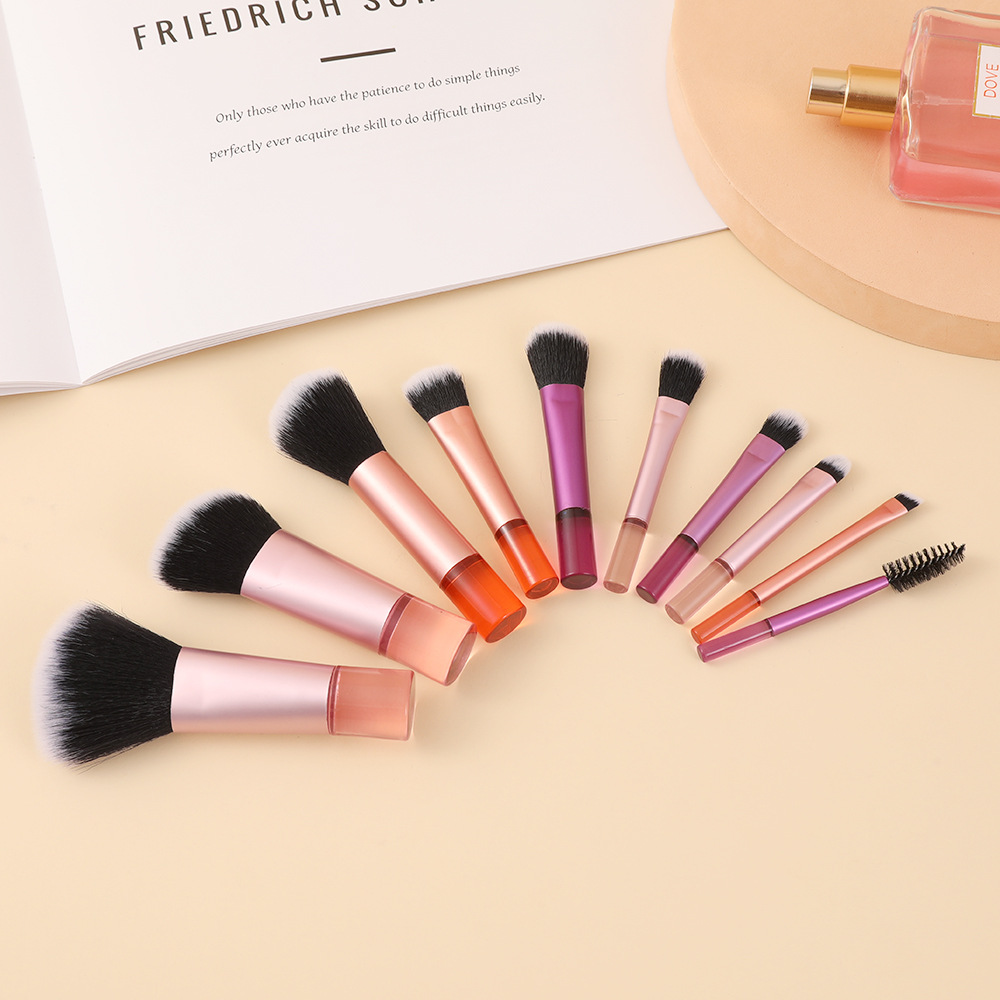 产品类别: 化妆刷 是否进口: 否 套刷支数: 10支 刷毛材质: 人造纤维 刷包类型: 无 刷柄材质: 亚克力 刷柄规格: 长杆 毛长规格: 详询客服 总长规格: 12.5*16cm 适用人群: 普通人群 重量: 0.061 kg/套