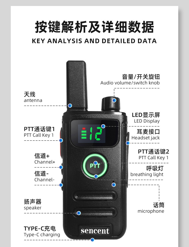 跨境晟讯SC-330对讲机5W大功率户外露营小型手持便携迷你对讲机