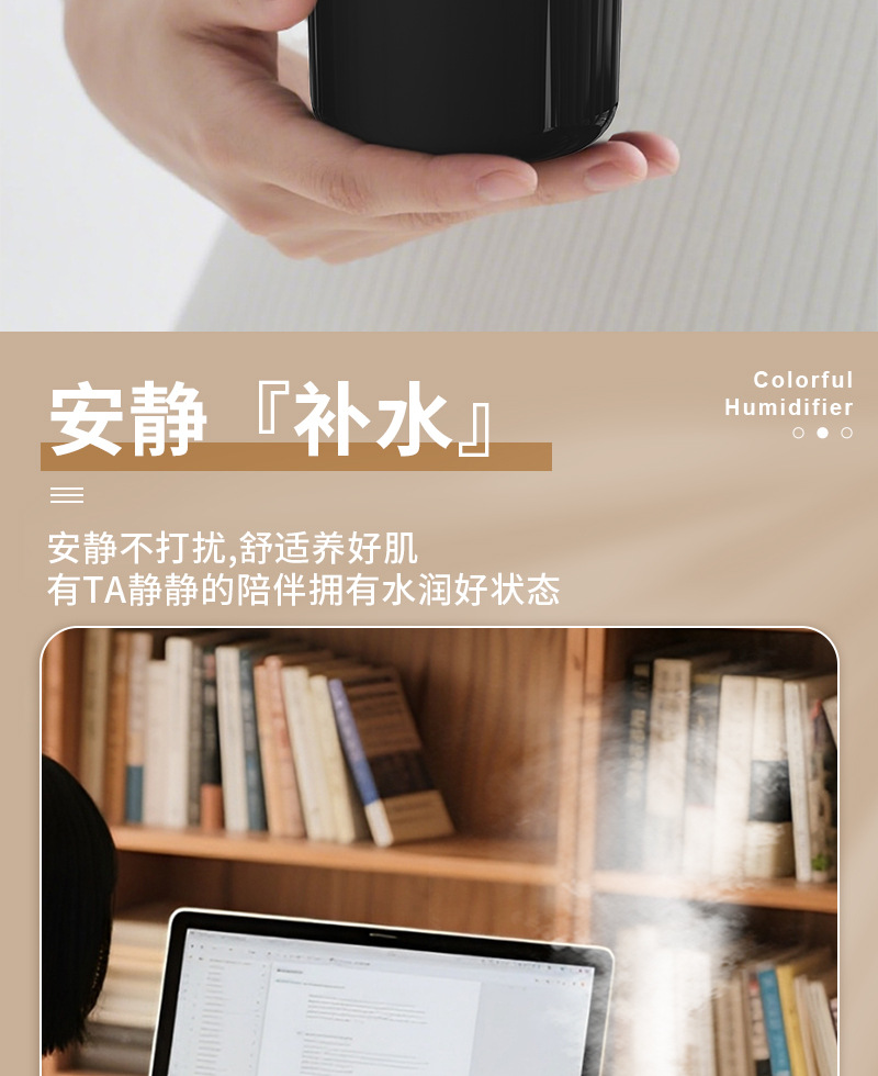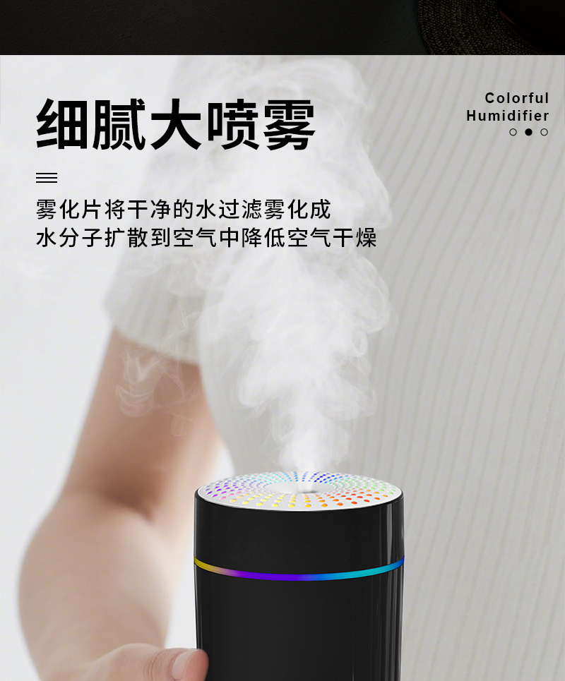 跨境新款车载加湿器迷你家用桌面usb宿舍卧室氛围灯轻音补水 投诉