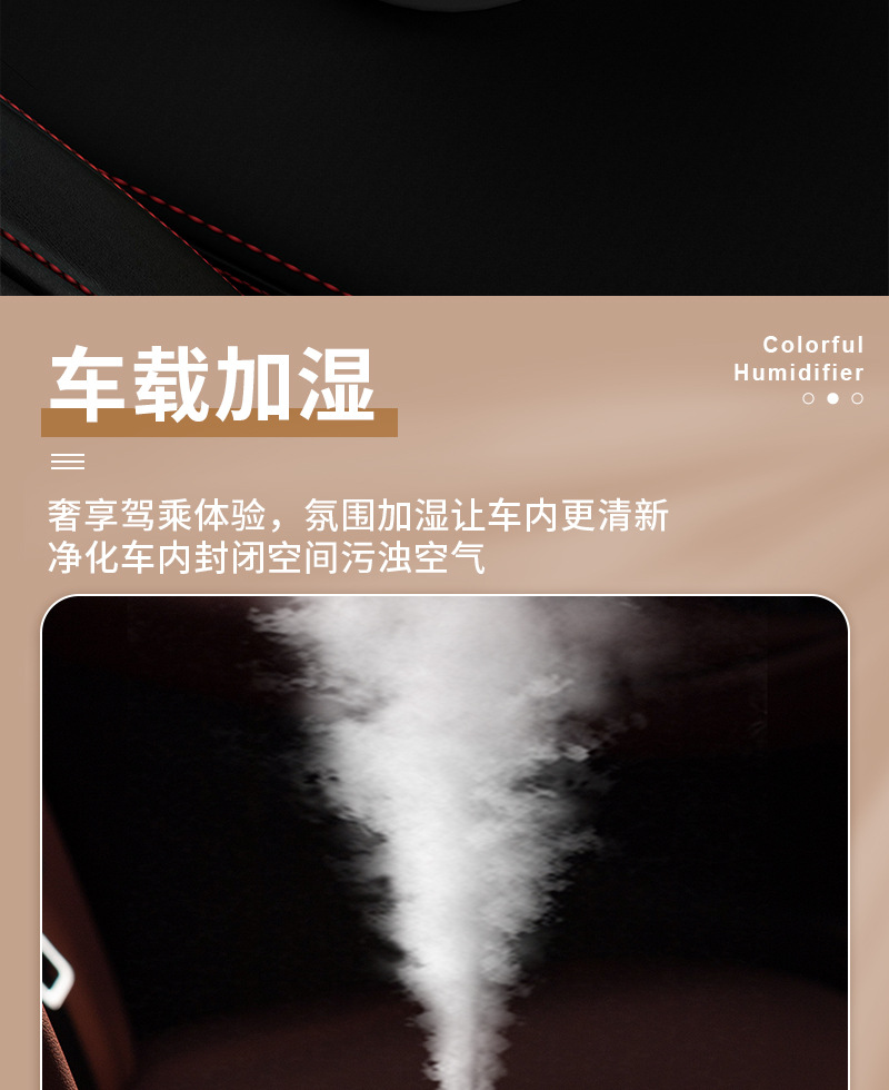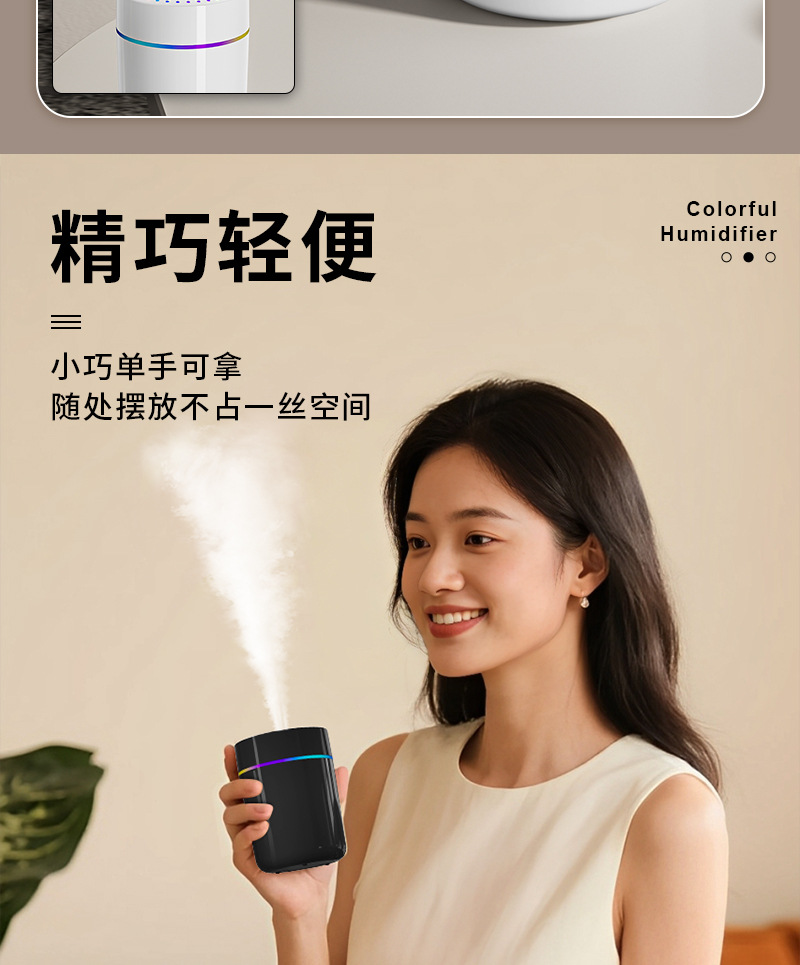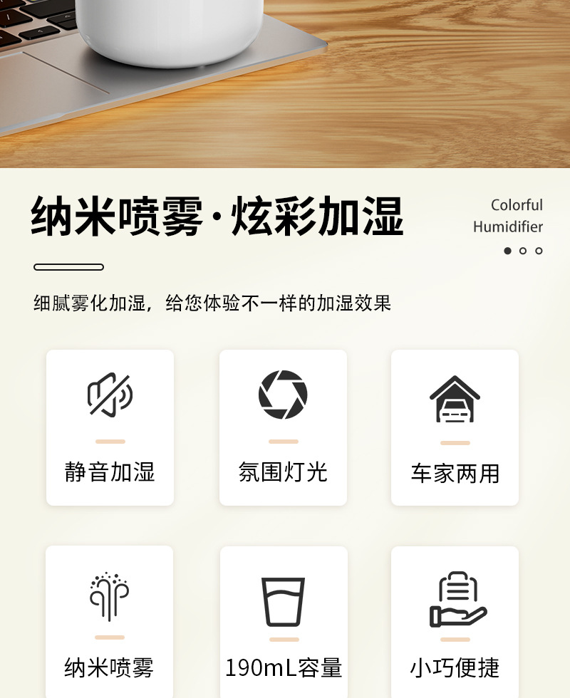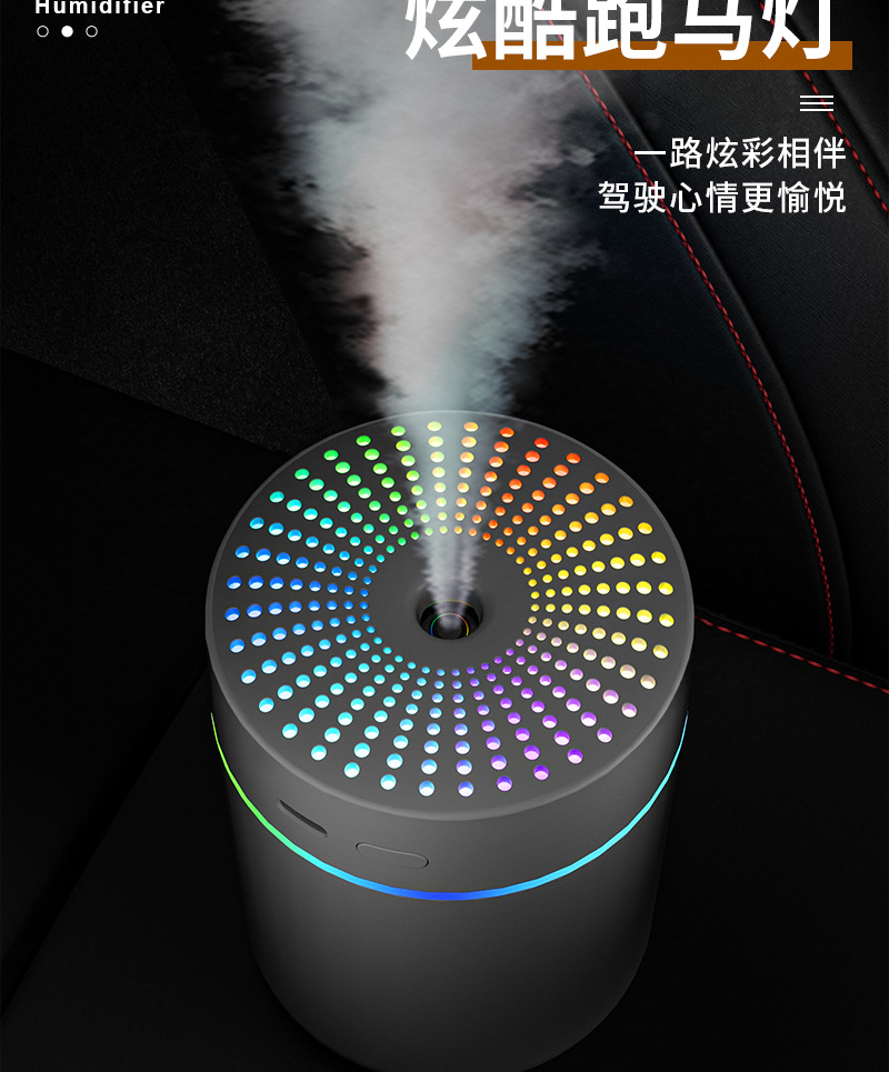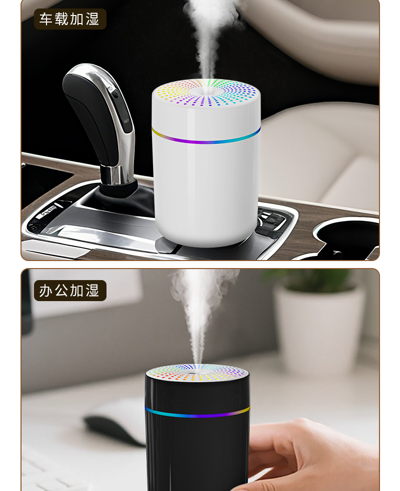 跨境新款车载加湿器迷你家用桌面usb宿舍卧室氛围灯轻音补水