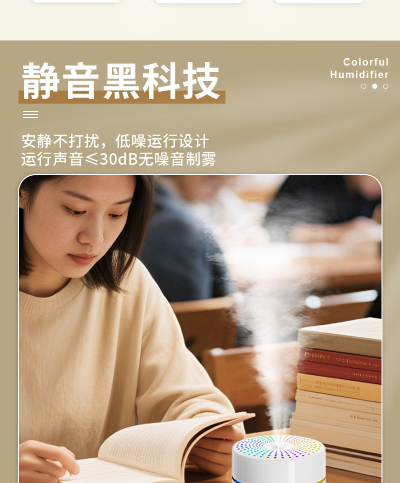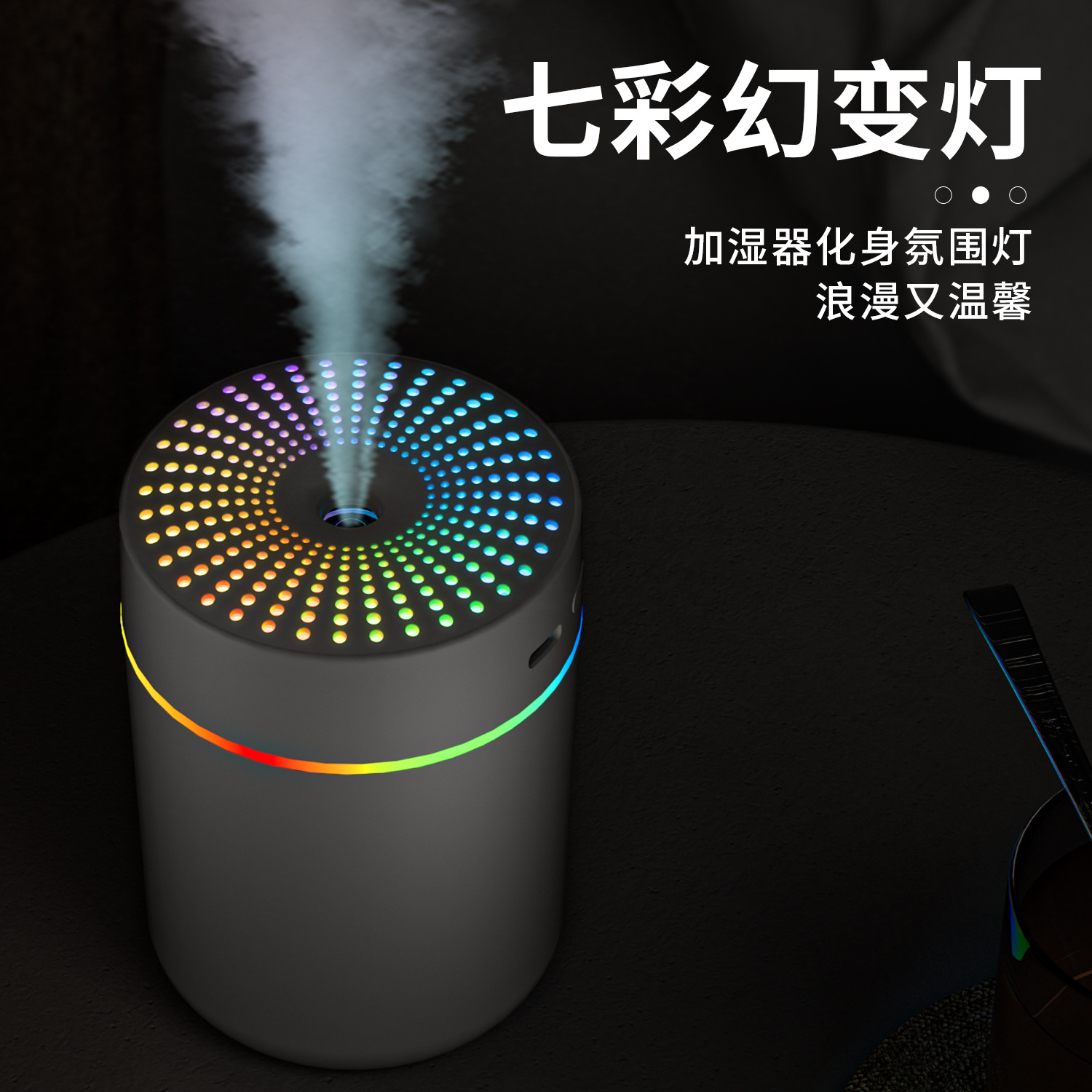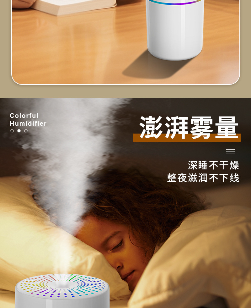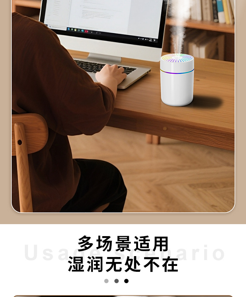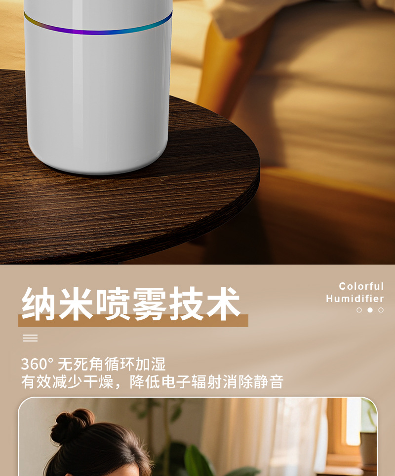 跨境新款车载加湿器迷你家用桌面usb宿舍卧室氛围灯轻音补水