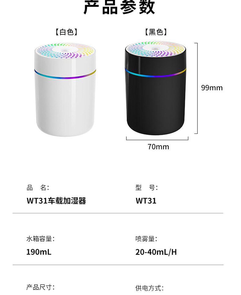 2025年跨境新款车载加湿器迷你宿舍卧室桌面氛围轻音补水雾化 投诉