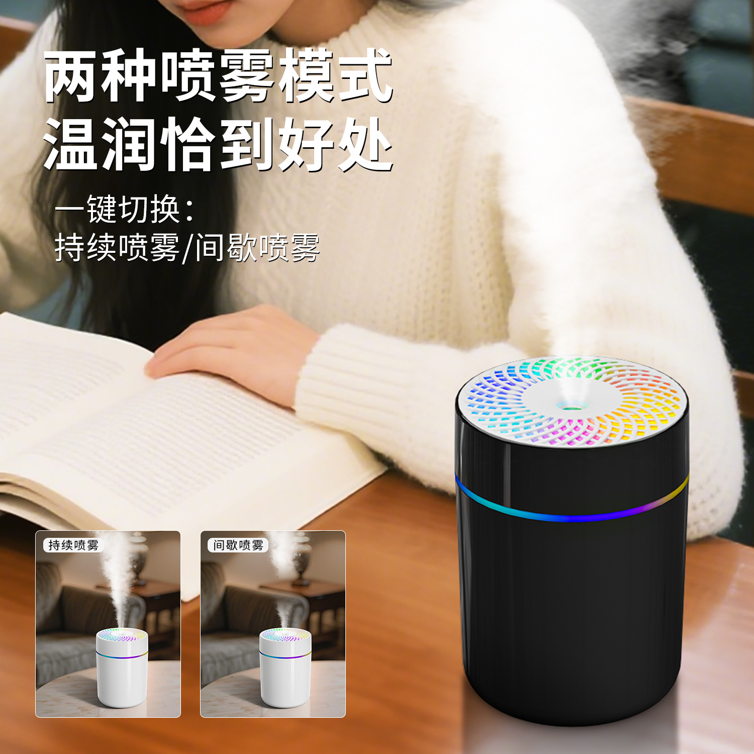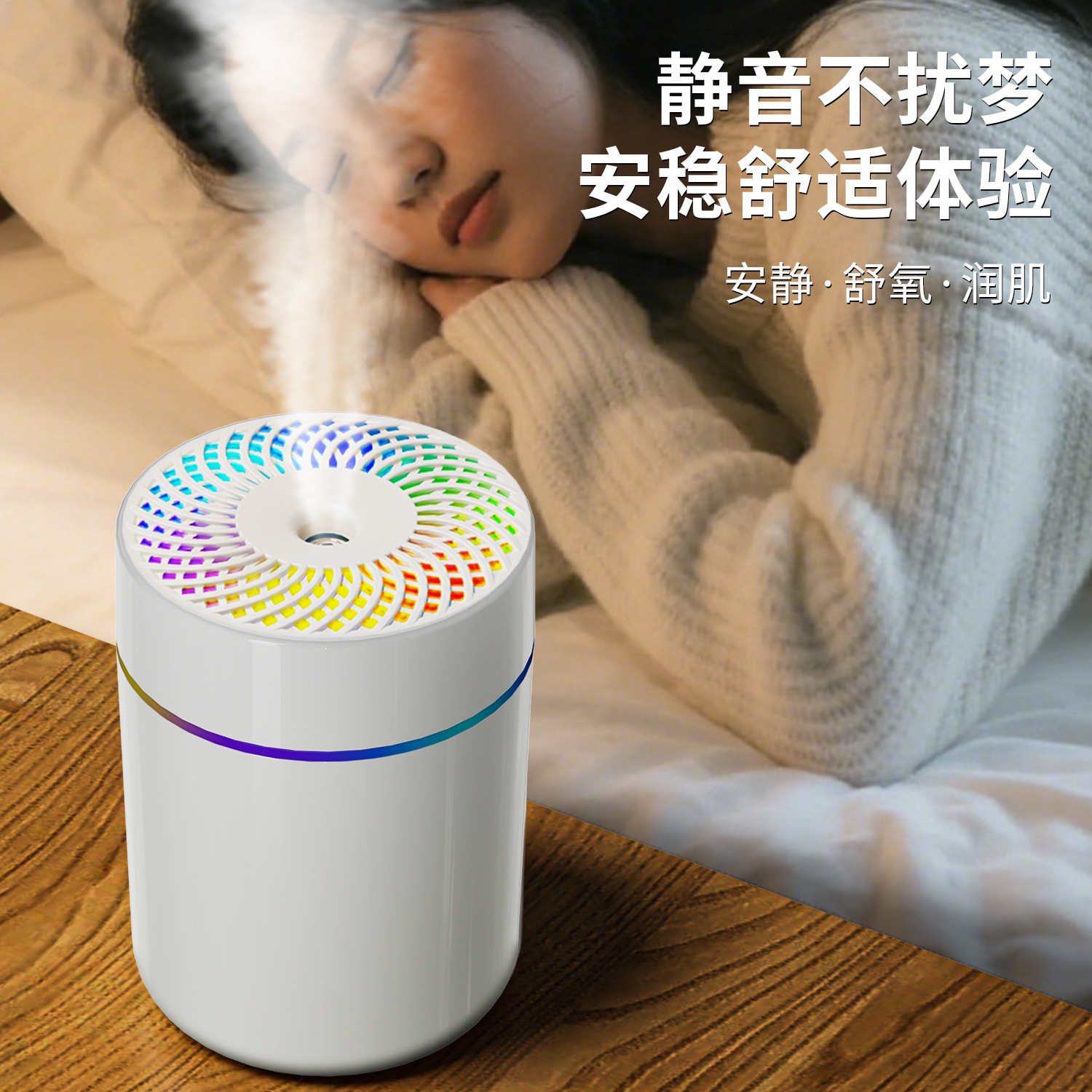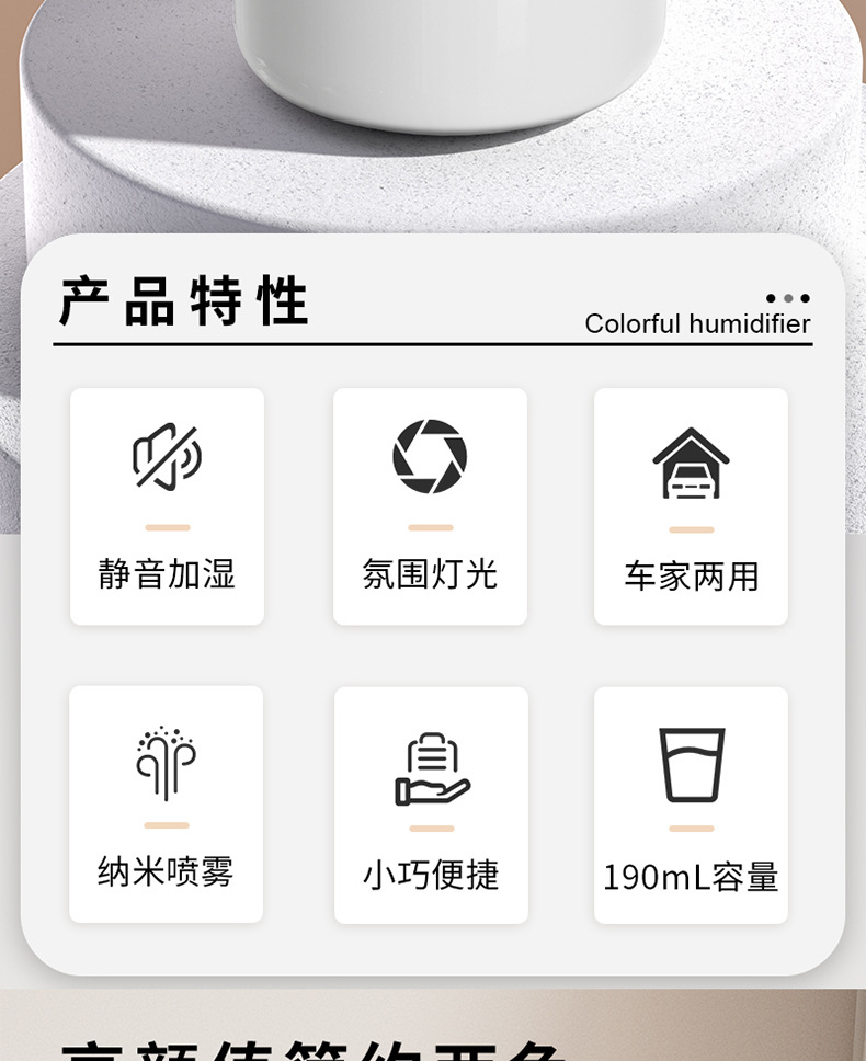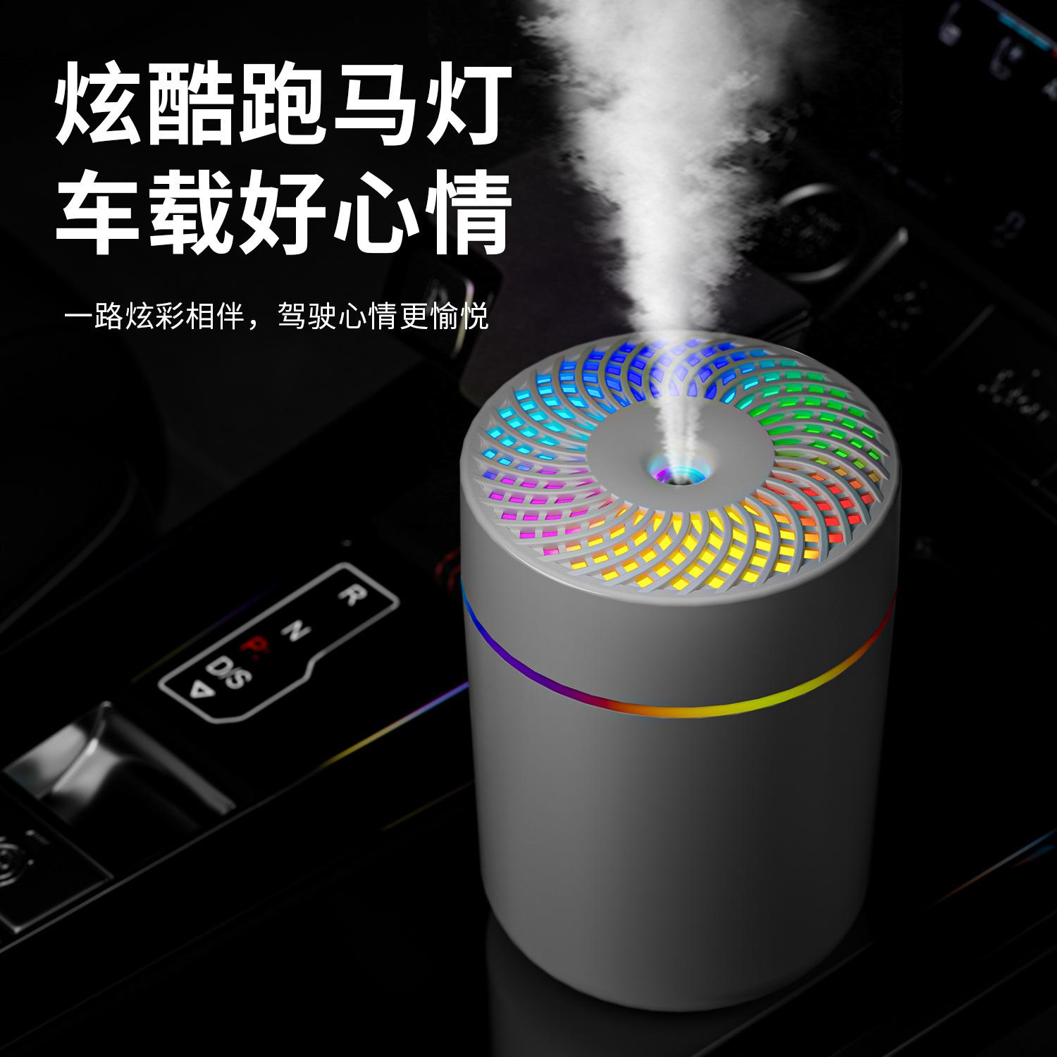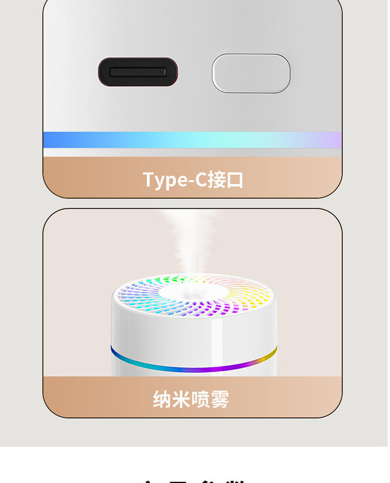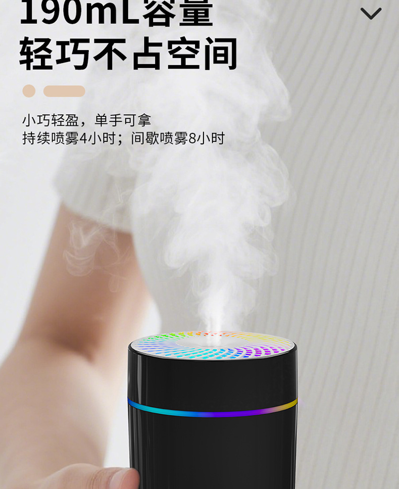 2025年跨境新款车载加湿器迷你宿舍卧室桌面氛围轻音补水雾化