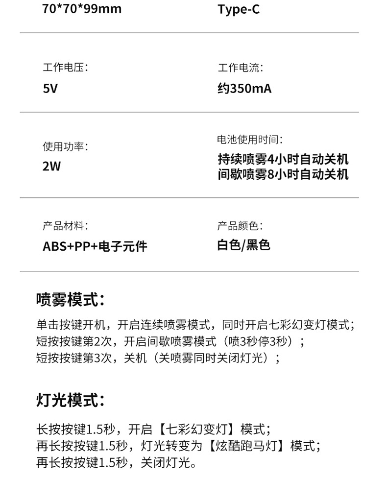 适用面积: 10平米以下 水箱容量: 0.5L以下 适用对象: 家用 功能: 超声波 出雾口数: 1个 操作方式: 机械式 定时功能: 2-8小时 缺水断电保护: 支持 重量: 0.5 kg/个