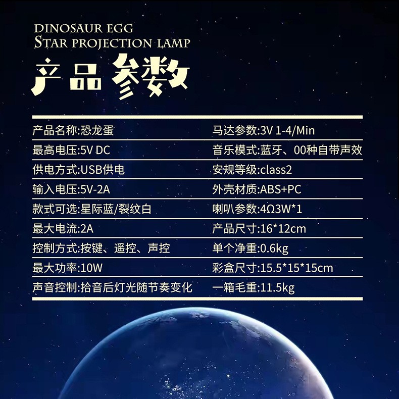 跨境满天星恐龙蛋星空投影仪蓝牙音响氛围灯小夜灯圣诞节礼物摆件 English | 投诉