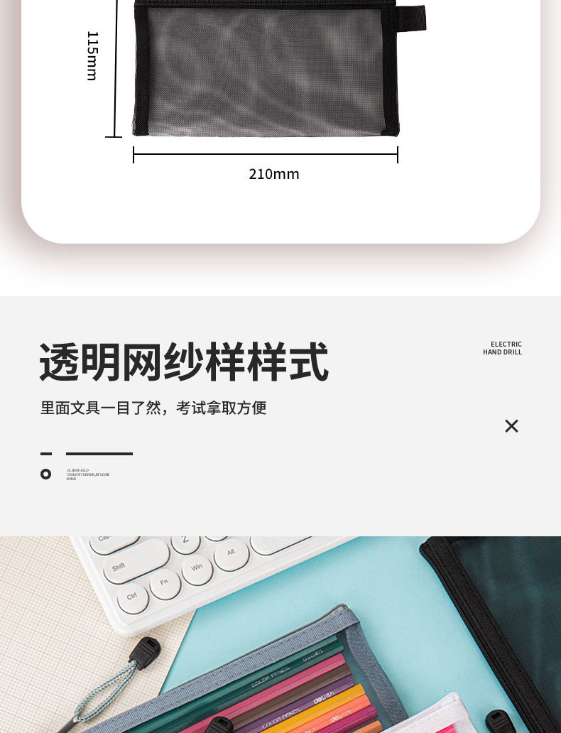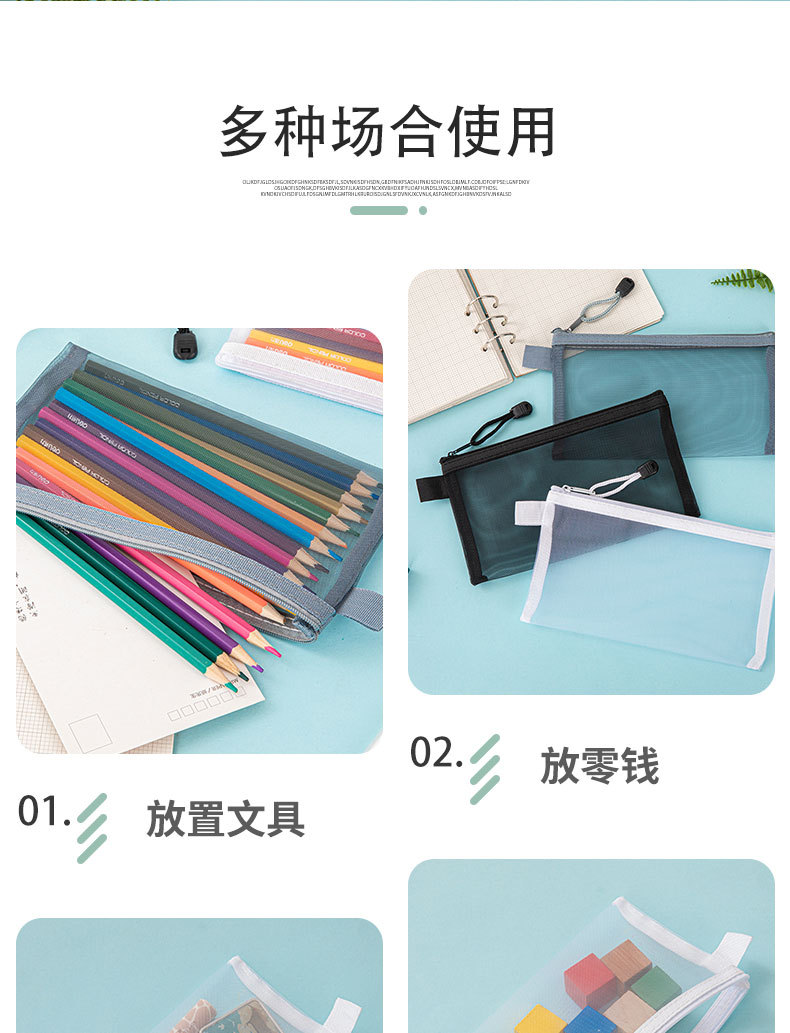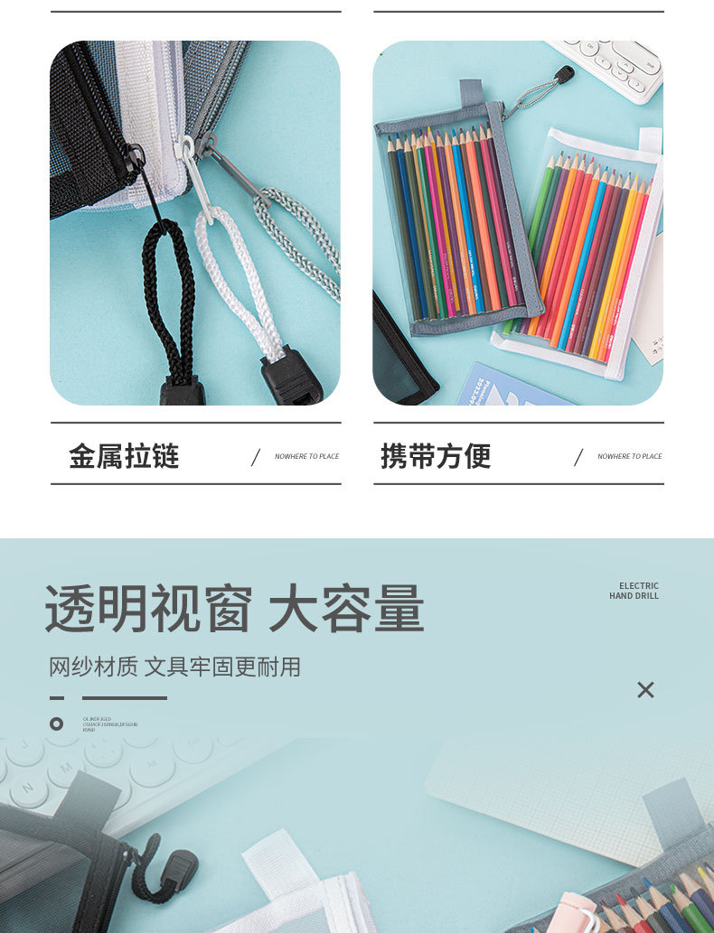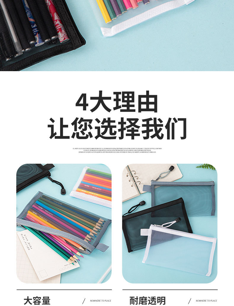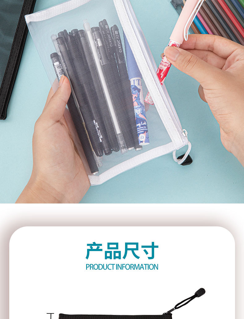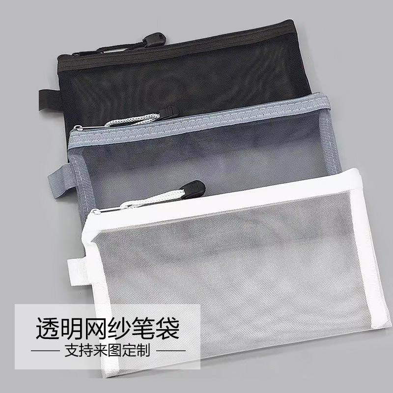 简约透明网纱笔袋收纳袋学生考试专用便携笔袋大容量铅笔袋子 English | 投诉