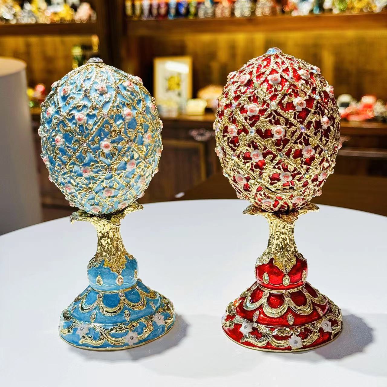 外贸跨境复古俄罗斯彩蛋七宝烧手工艺品欧式轻奢装饰珐琅彩摆件