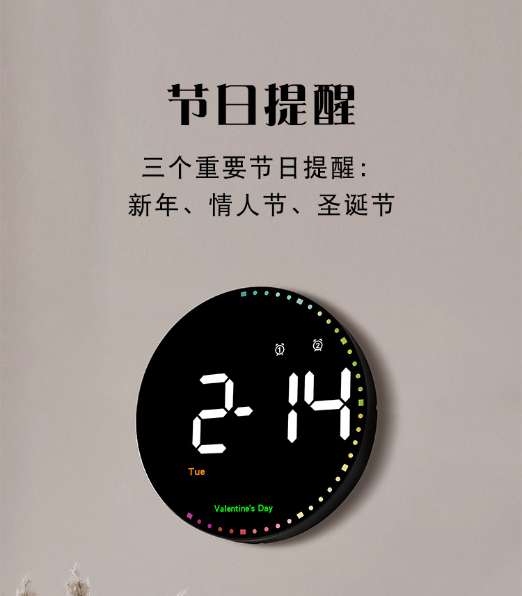 数字电子钟万年历挂钟客厅简约装饰led时钟炫彩灵动钟表挂墙6635
