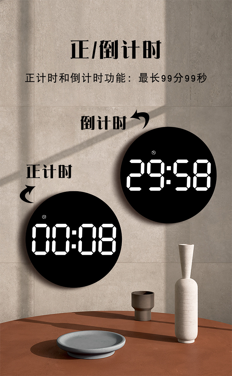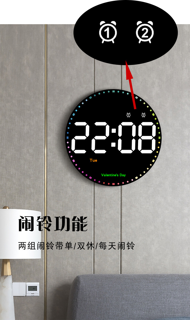 简约多功能时钟客厅挂钟家饰数字电子钟静音时钟多组闹钟8021