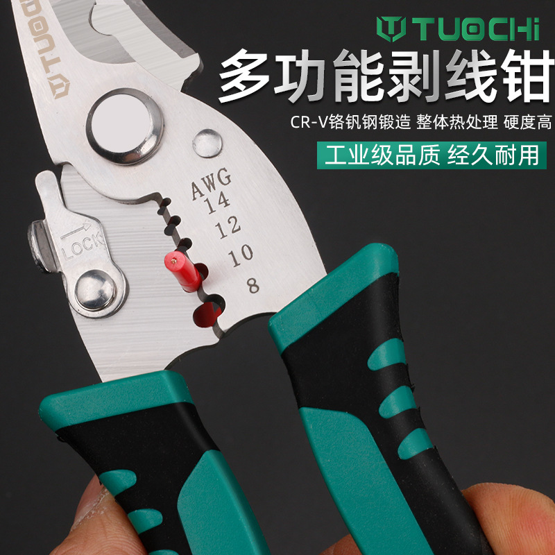 品牌: 拓驰 作用: 普通 刃口材质: 铬钒钢 材质: 铬钒钢 特性: 普通 重量: 117 全长: 193 制式: 公制 规格: 8寸剥线钳 重量: 0.5 kg/把