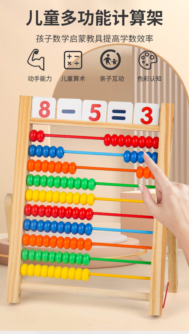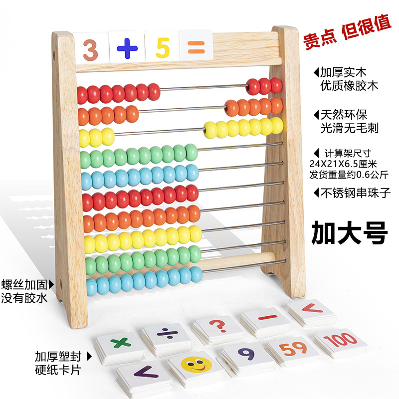 【材质】:计算架为优质橡胶木材质,珠子为实木材质,横档为不锈钢材质