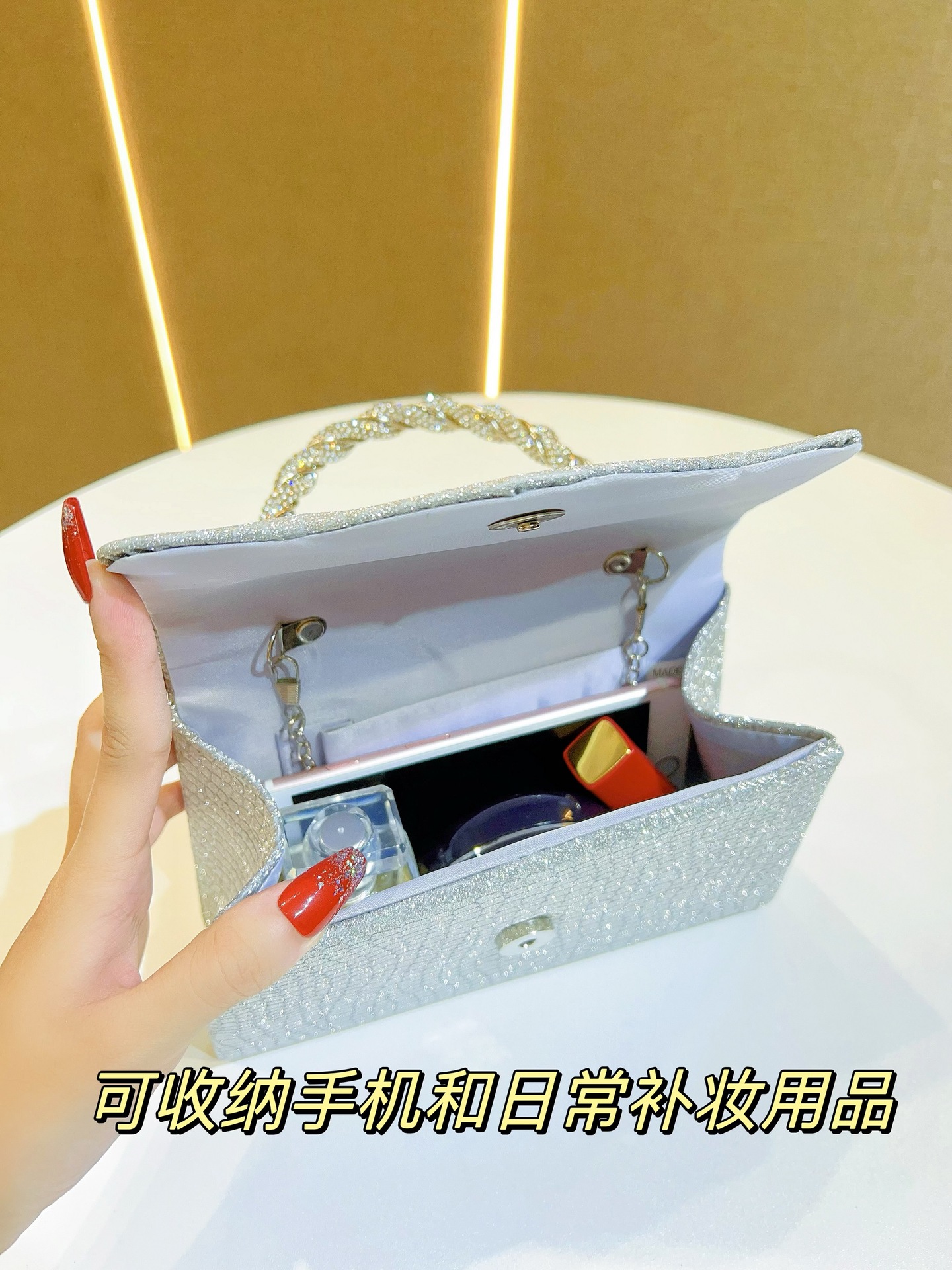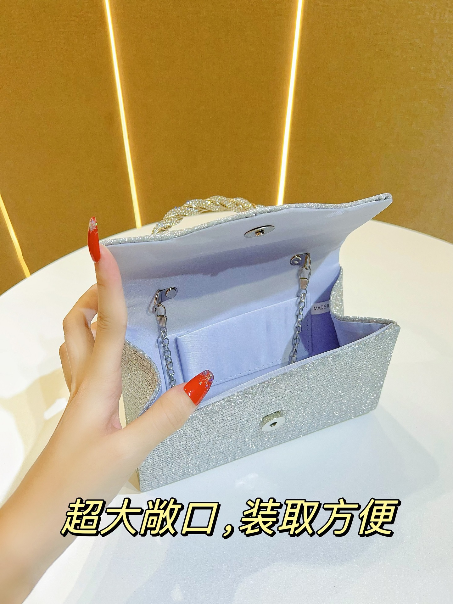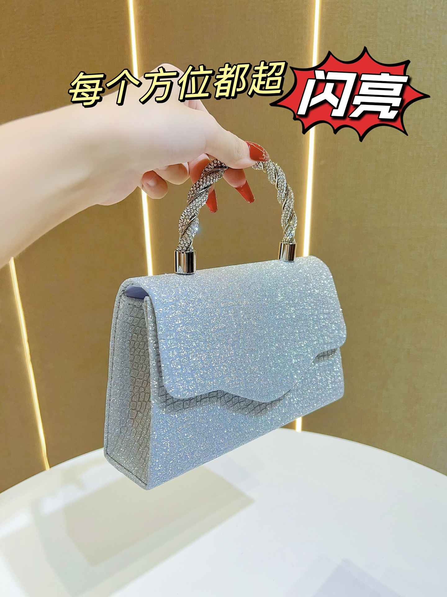 韩新款水钻晚宴包跨境欧美女士手拎包闪亮手提包KTV公主包礼服包 English | 投诉