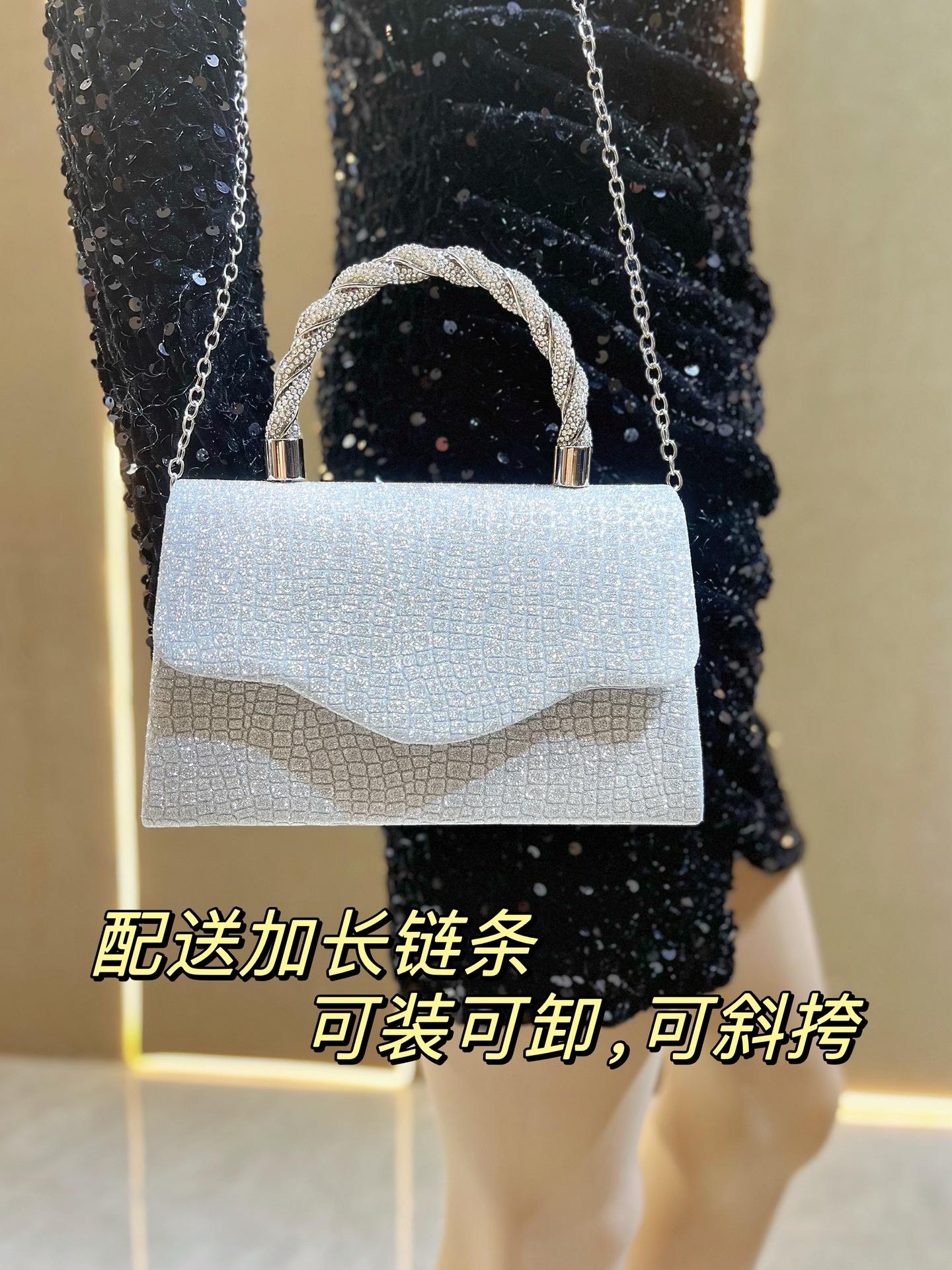 韩新款水钻晚宴包跨境欧美女士手拎包闪亮手提包KTV公主包礼服包