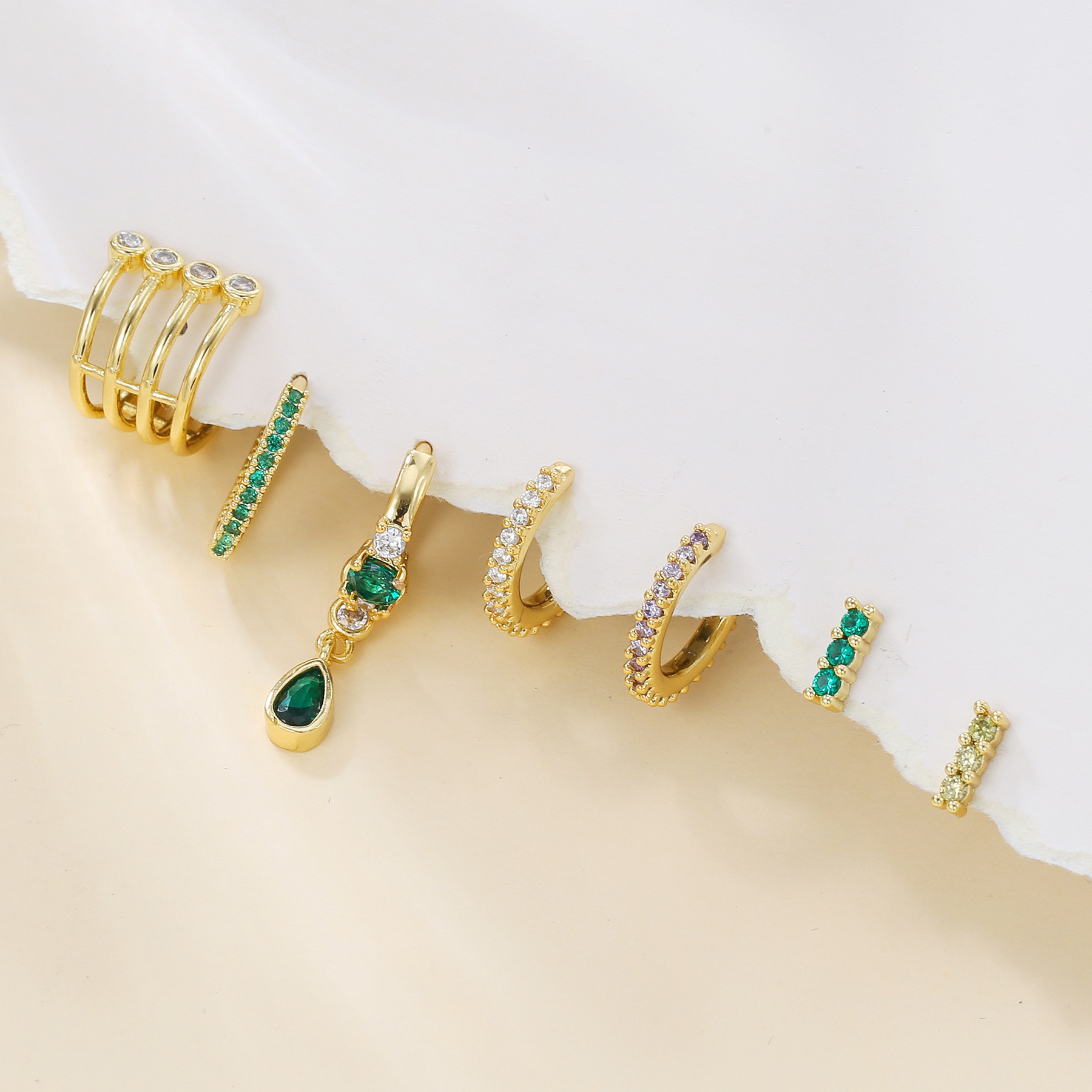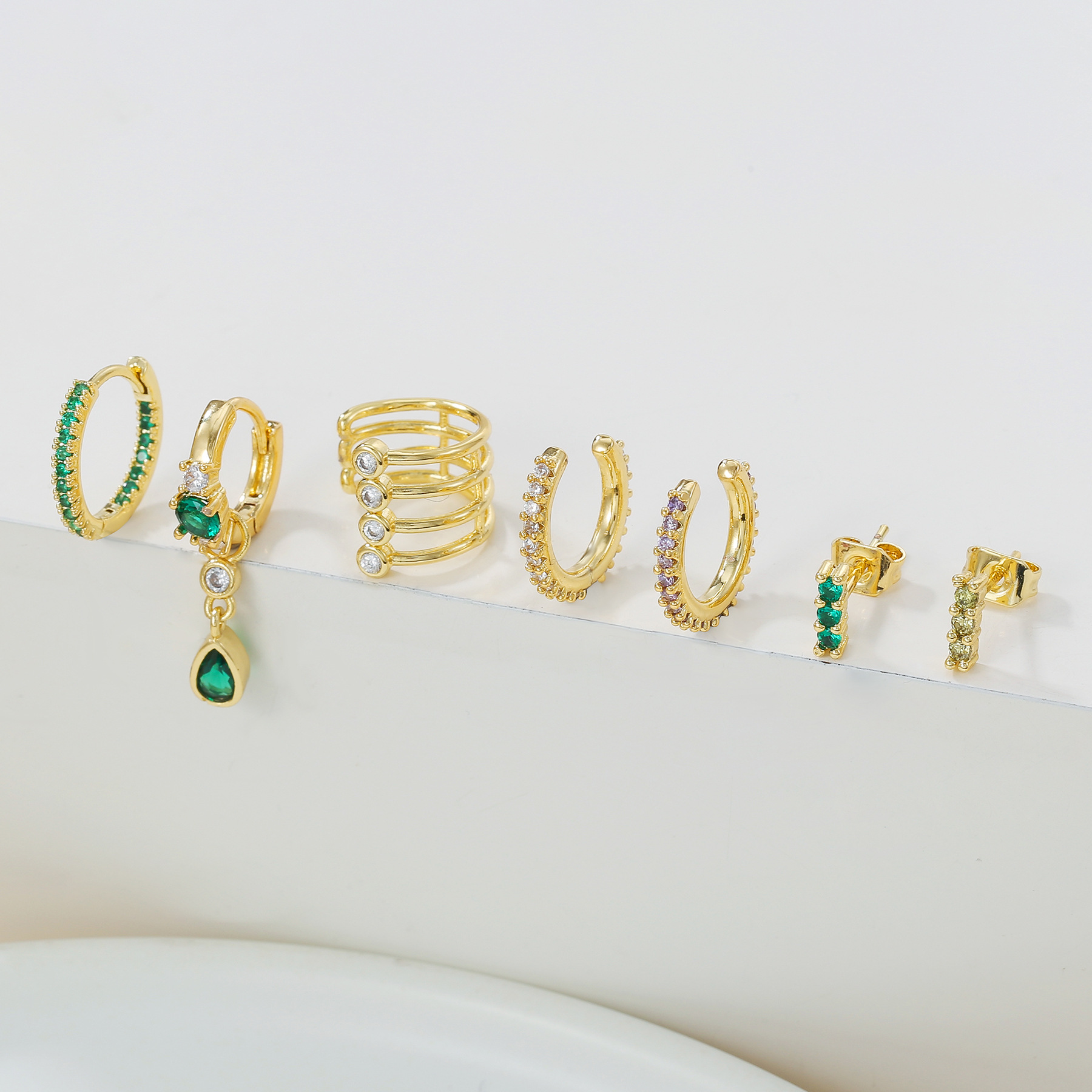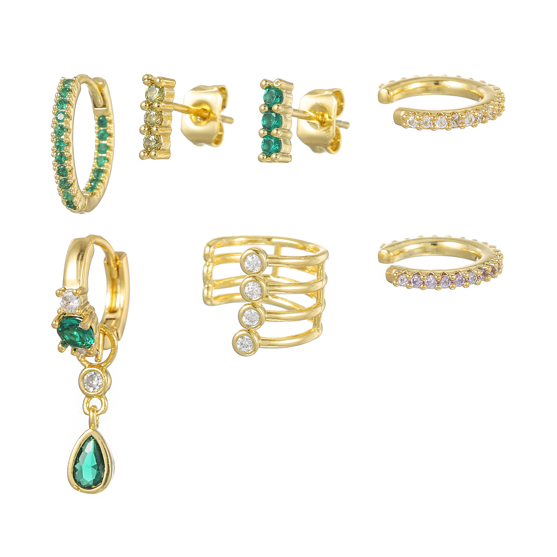 跨境欧美彩色锆石耳环轻奢圈圈网红款个性套装耳环节日饰品礼物女 English | 投诉