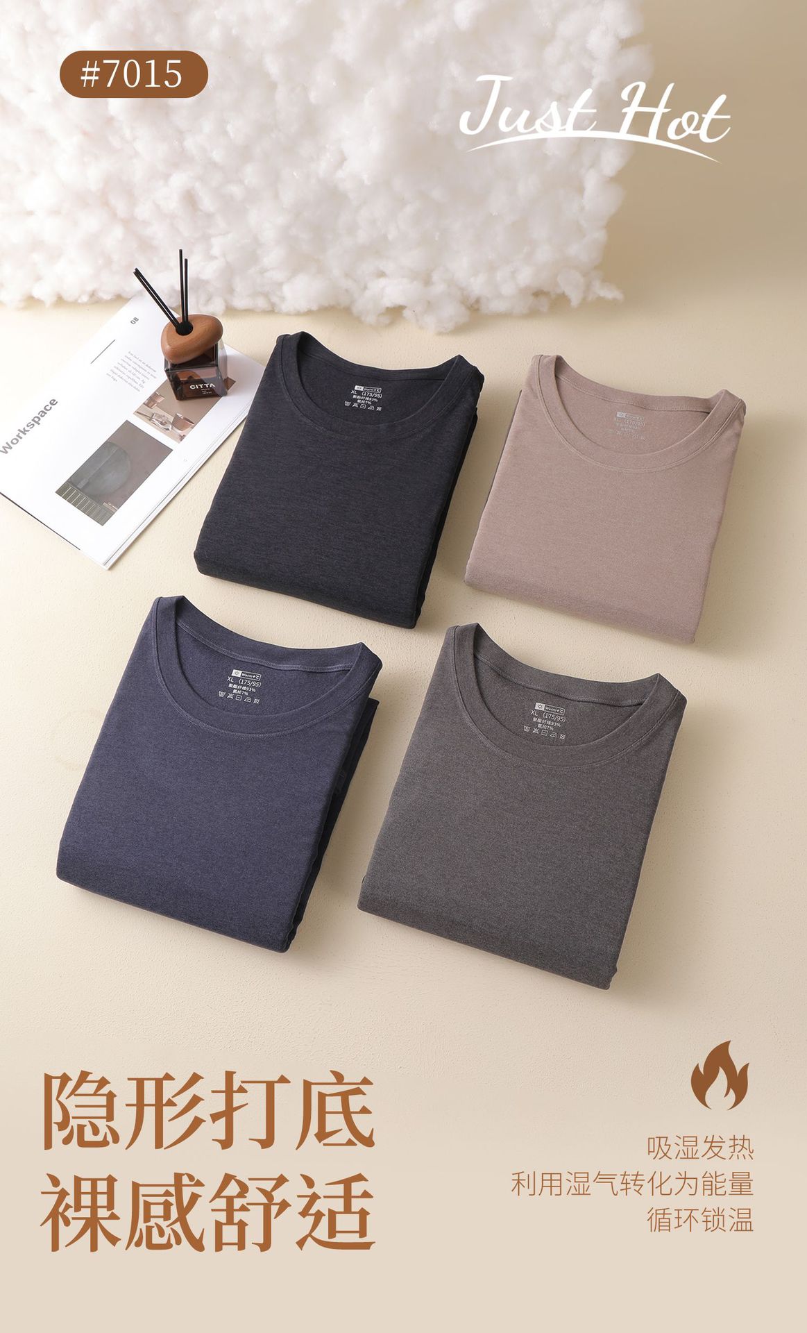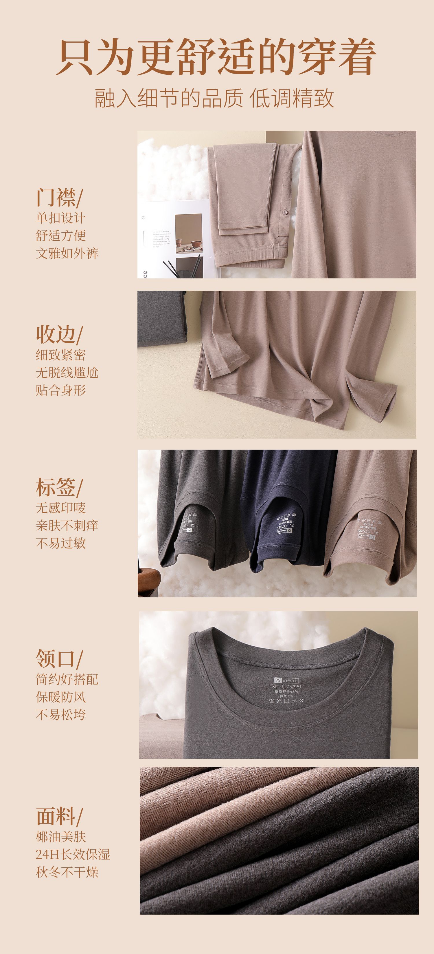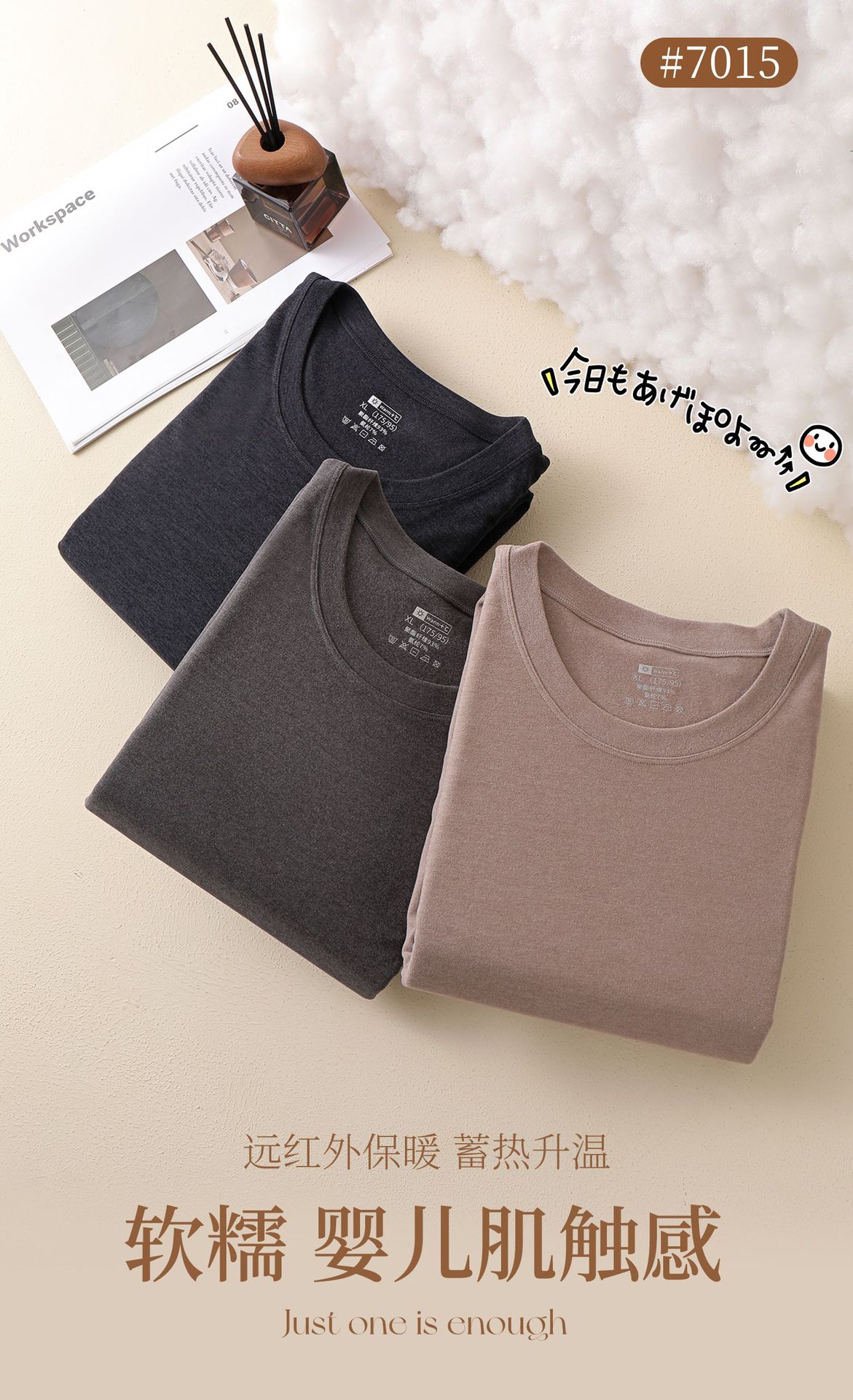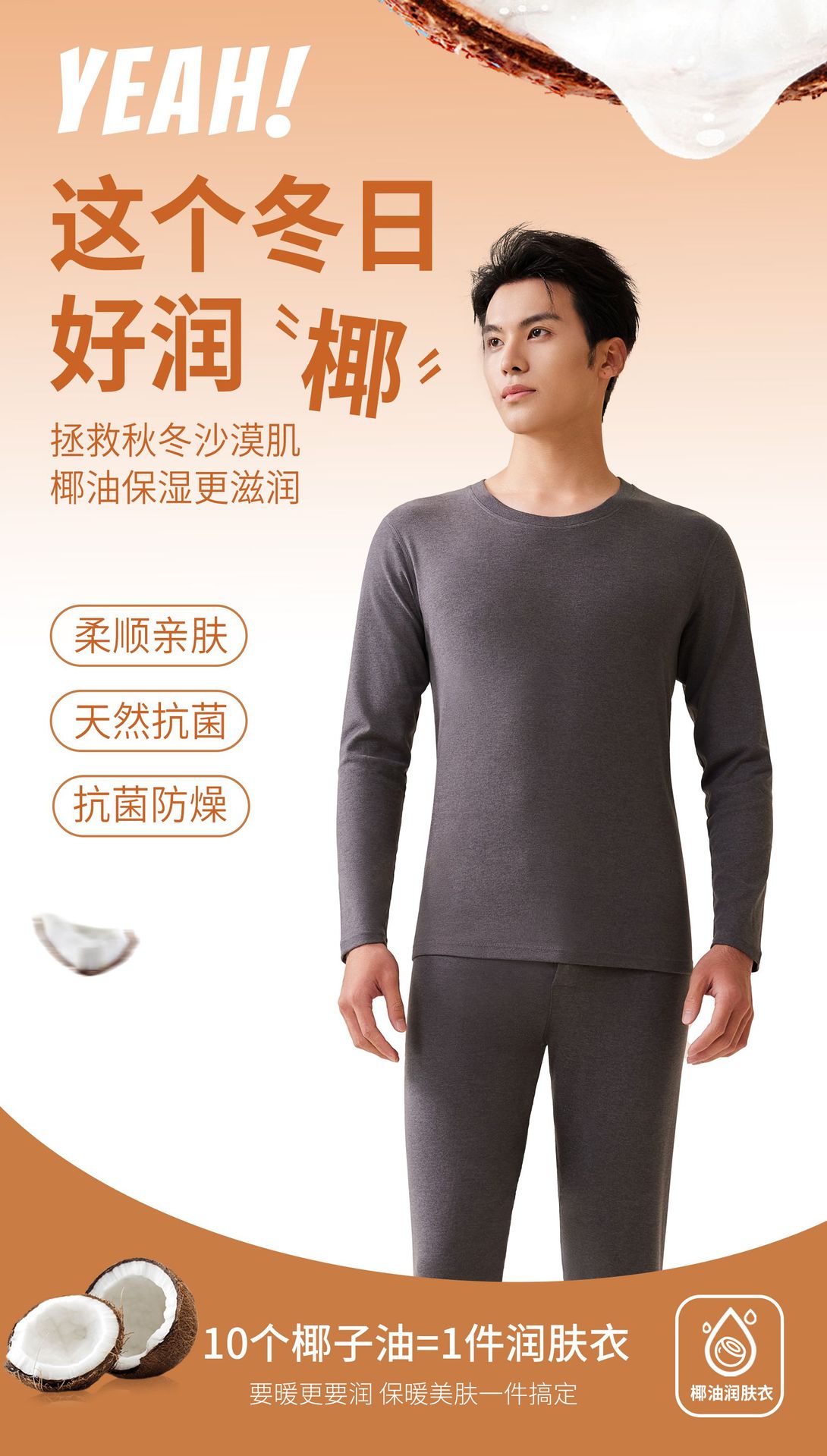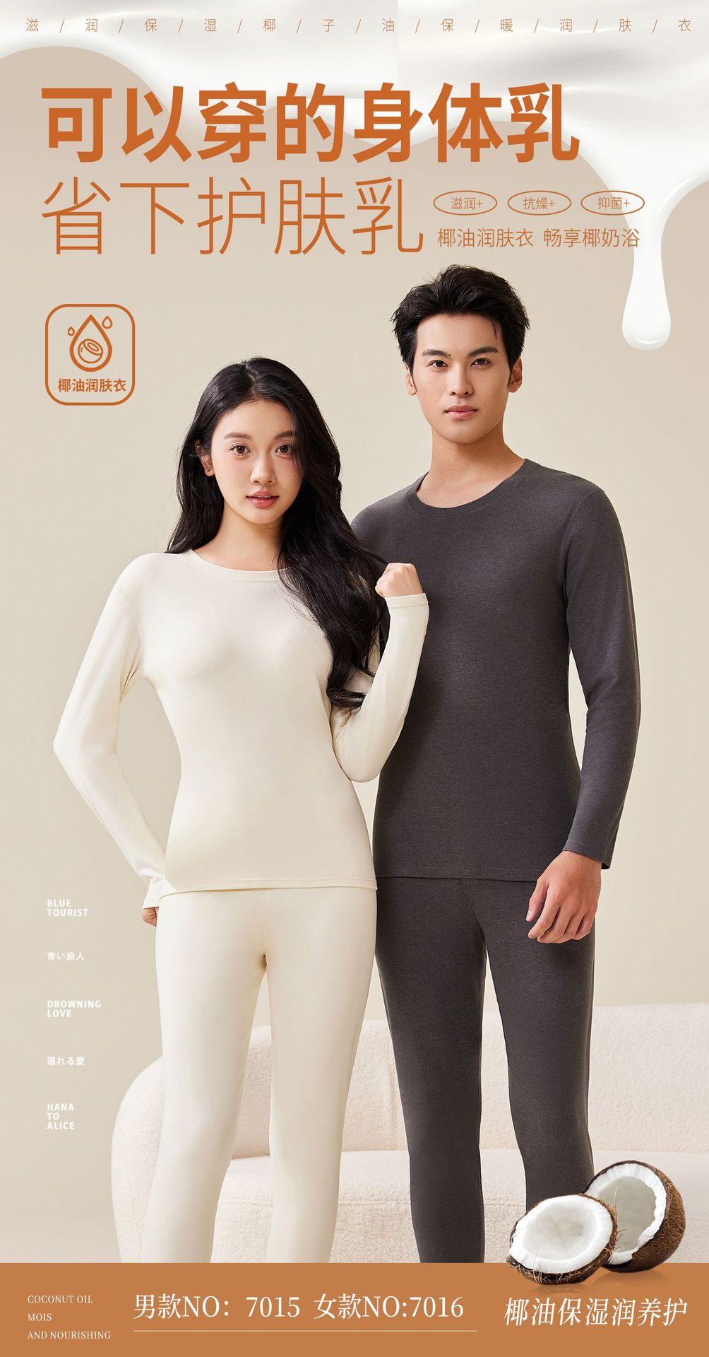 7015椰子油润肤保暖内衣套装贴肤秋冬保暖套装秋衣秋裤男圆领