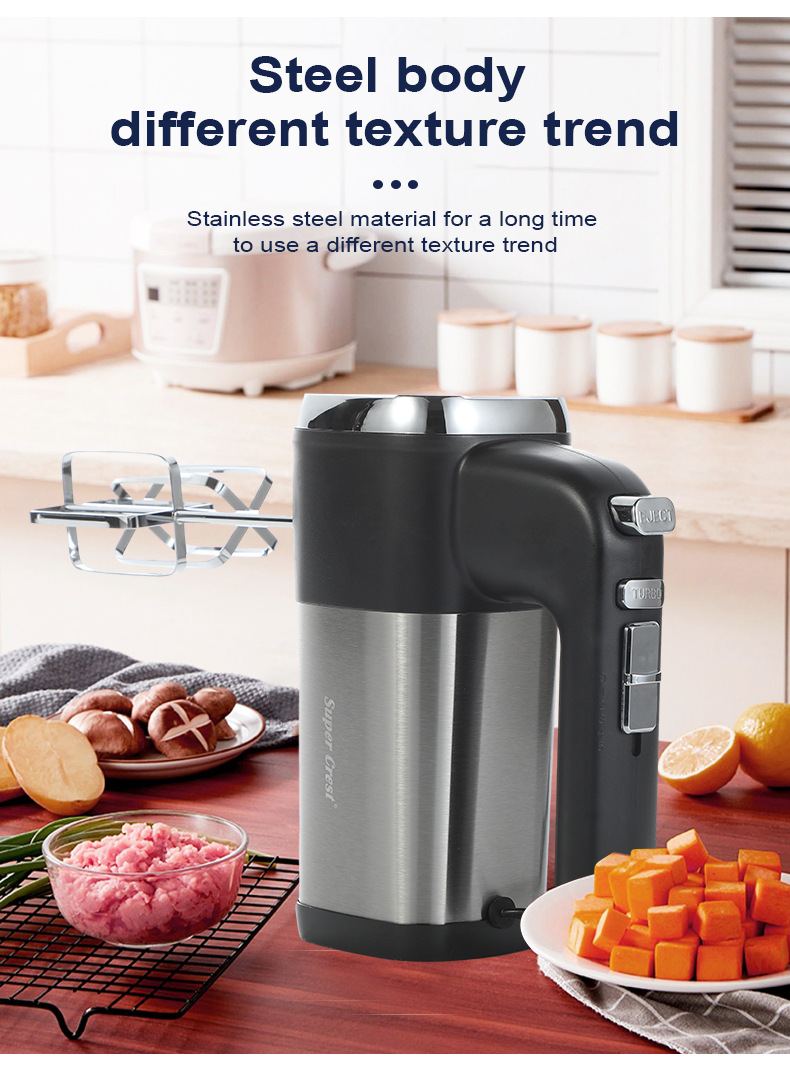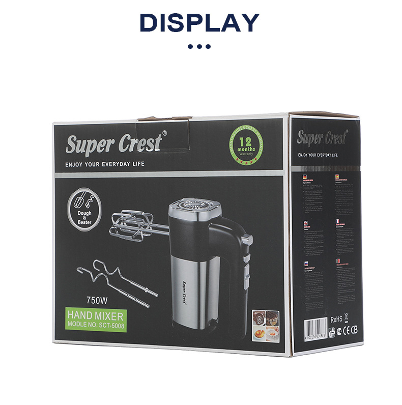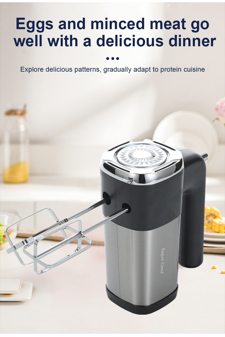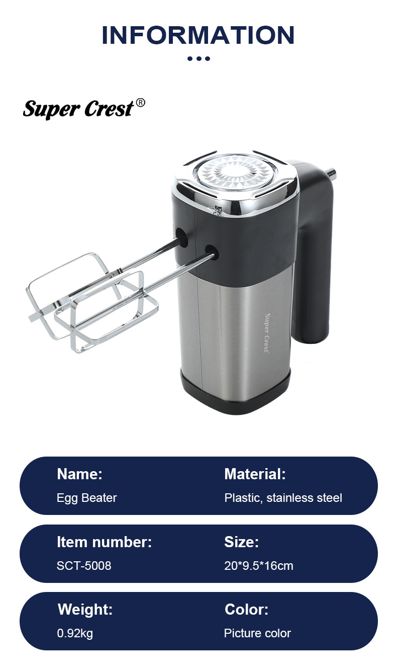 额定电压: 111V~240V(含) 产品分类: 打蛋器 品牌: SUPER CREST 功率: 500W及以下 功能: 搅拌,打蛋,多功能,家用,和面,全自动, 货号: SCT-5008 型号: 欧规 上市时间: 2023年冬季 放置方式: 手持式 颜色: 打蛋器 重量: 0.92 kg/台